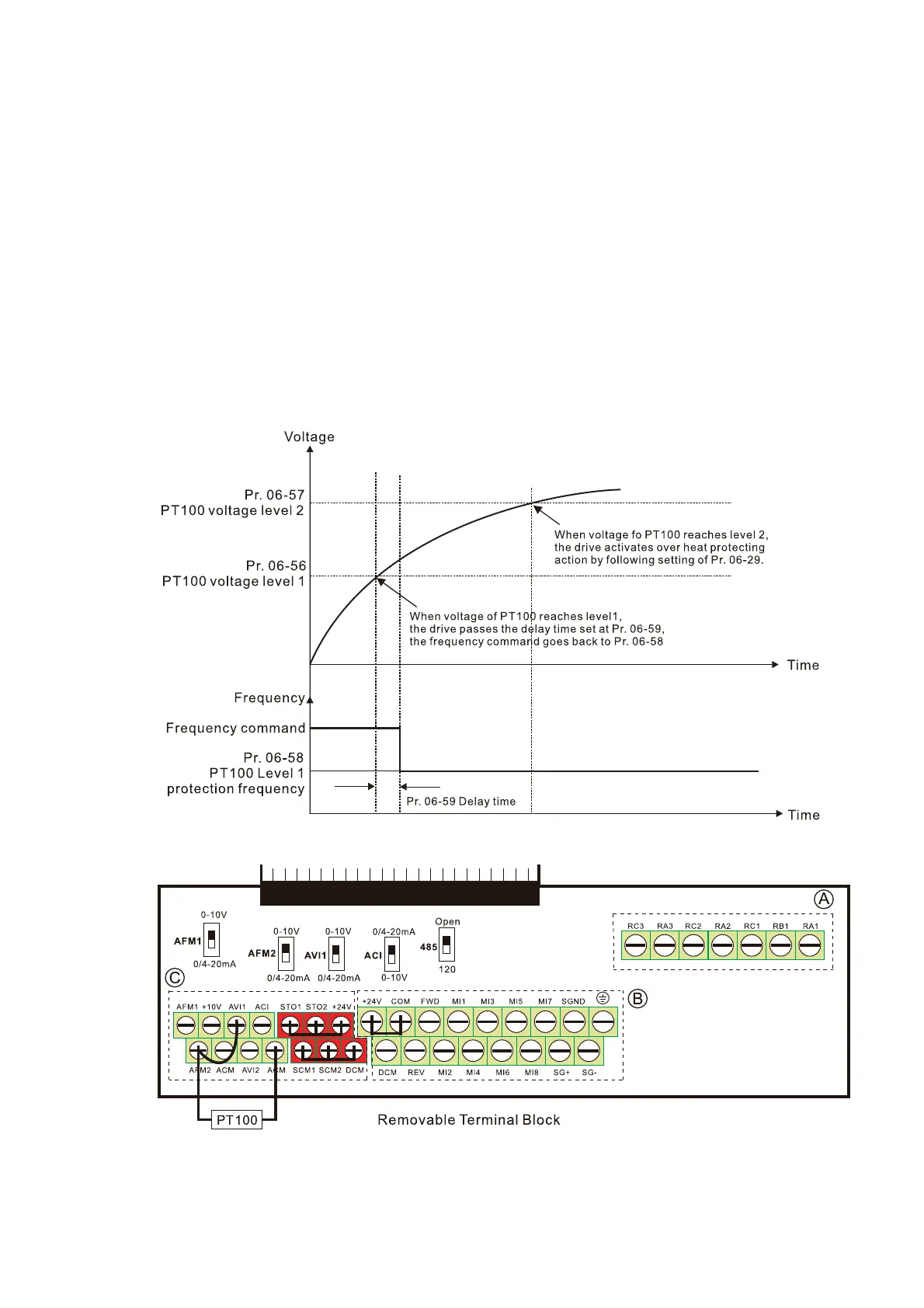 (6) There are two types of action levels for PT100. The diagram below shows the PT100