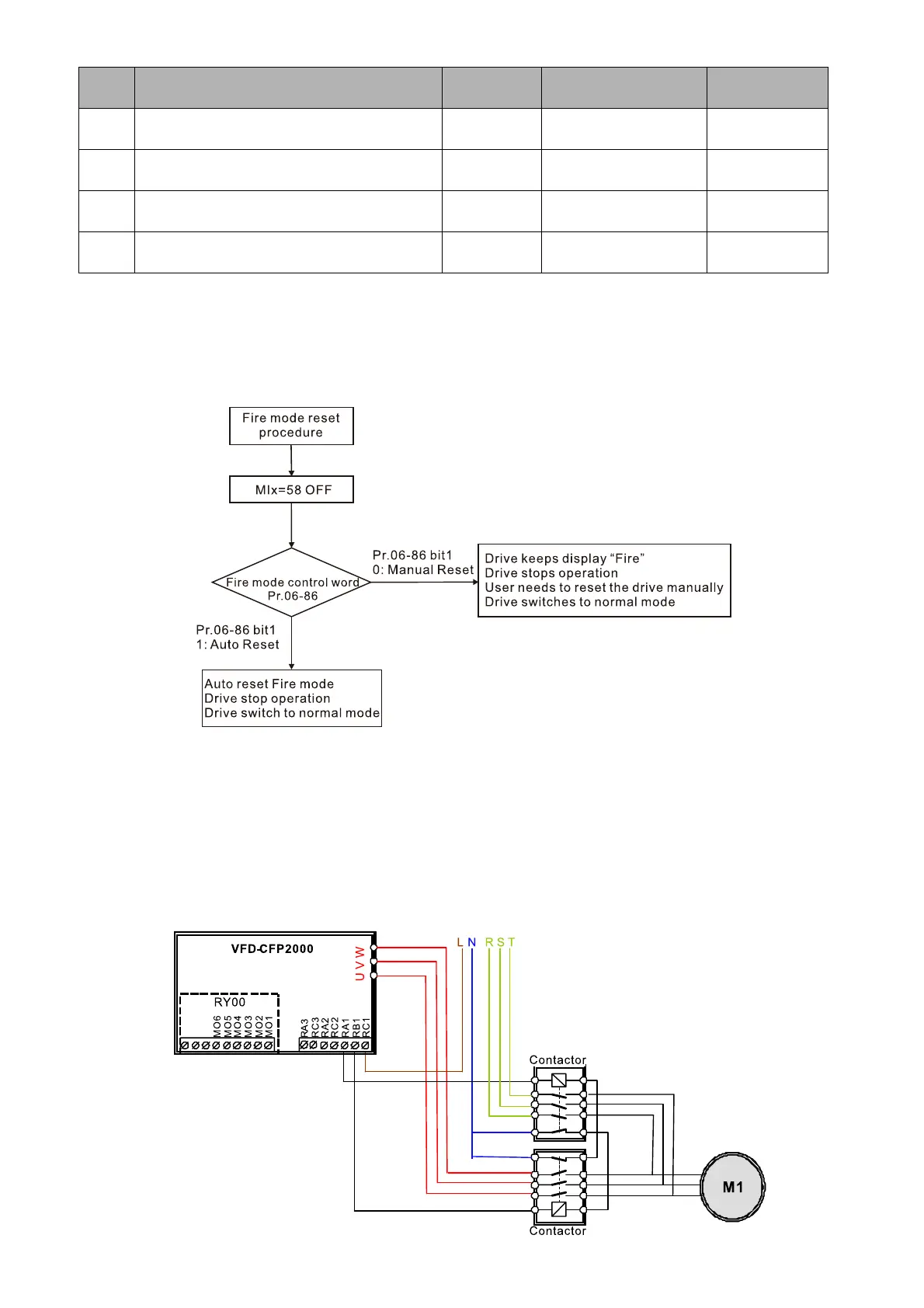 When the terminal MIx=58 changes from ON to OFF, the drive starts to run “fire mode reset procedure”,