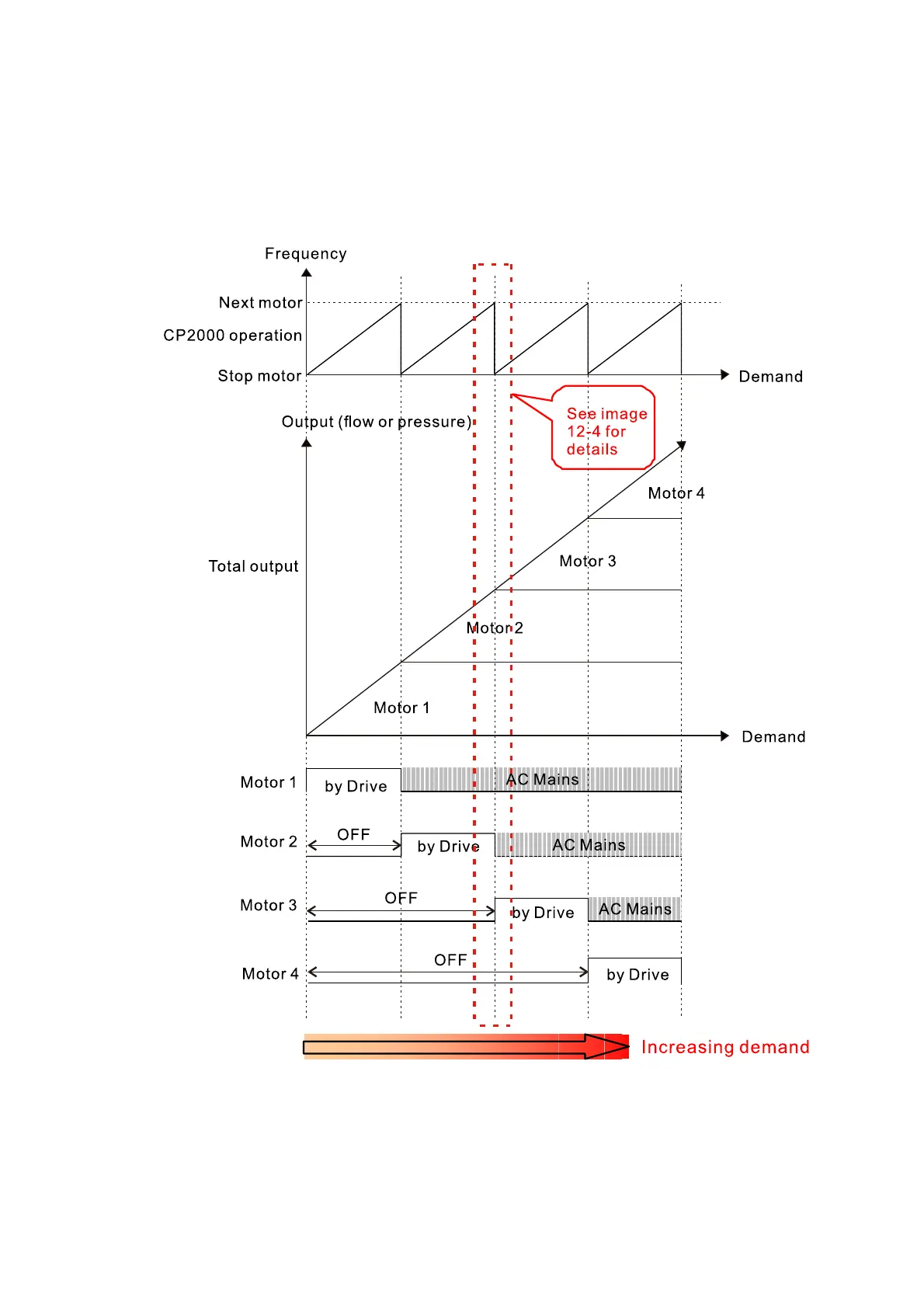 Pr.12-03 to run the next motor. If necessary, other motors are activated in sequence. See