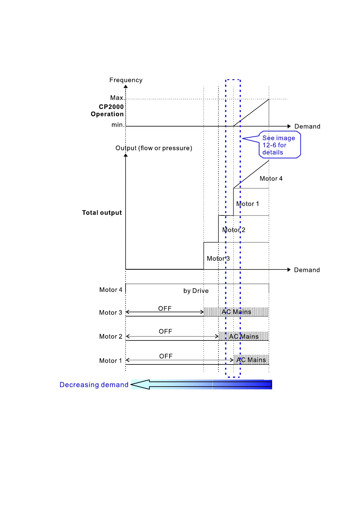 continues doing this until the last motor stops using mains electricity. See sequential diagram
