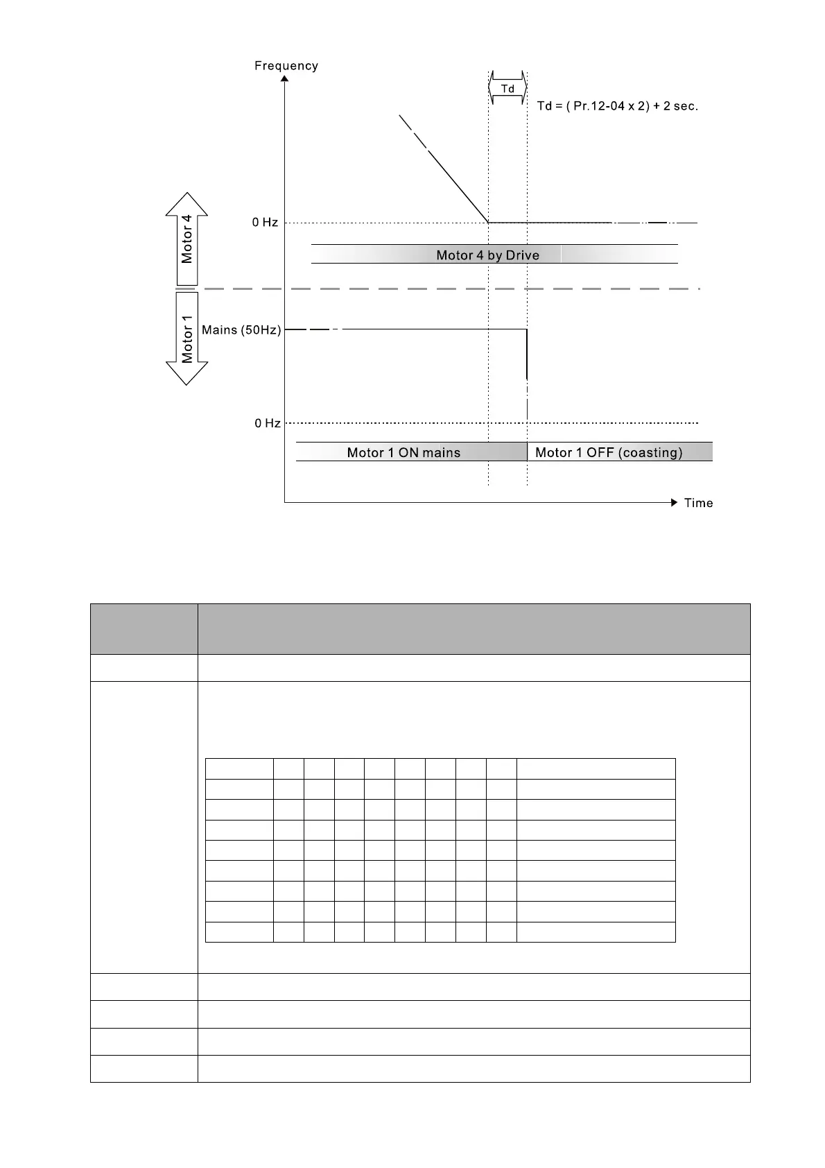 Pr.12-04=X Delay Time due to the Deceleration (or the Decrement) at Motor Switching (unit: sec.)