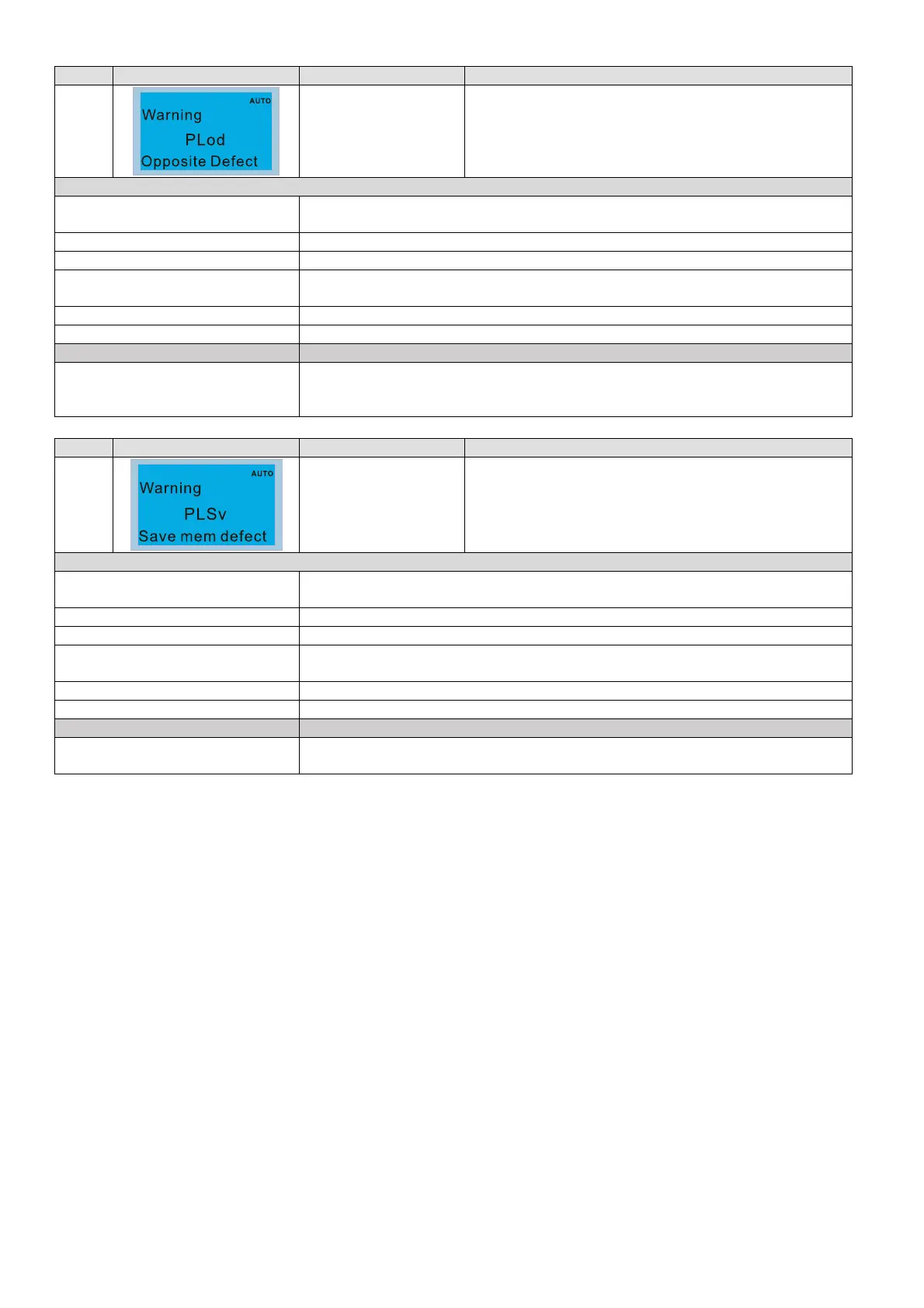 ID No. Display on LCD Keypad Warning Name Description