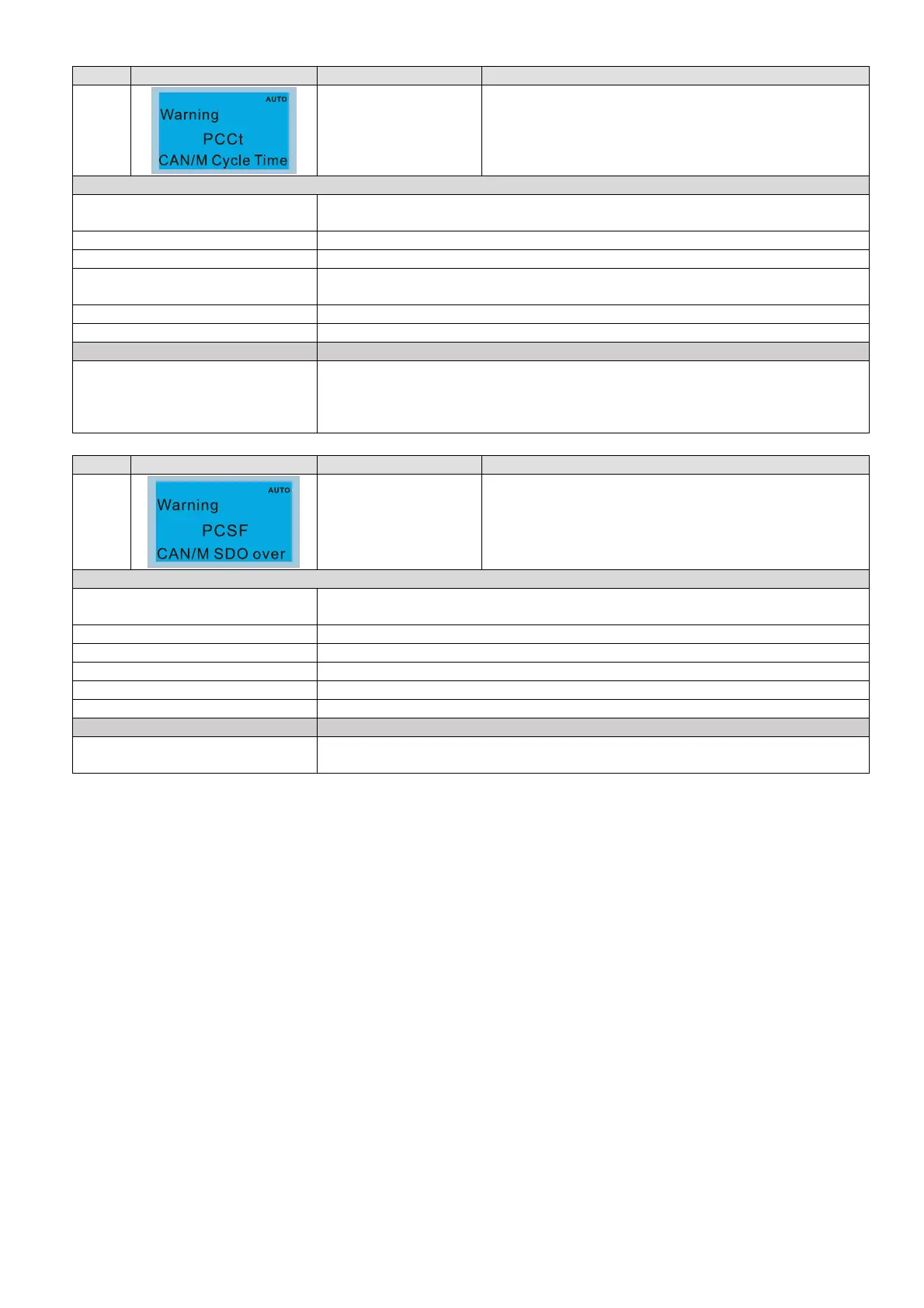 ID No. Display on LCD Keypad Warning Name Description