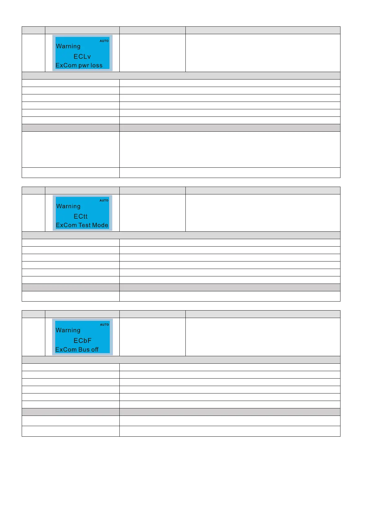 ID No. Display on LCD Keypad Warning Name Description