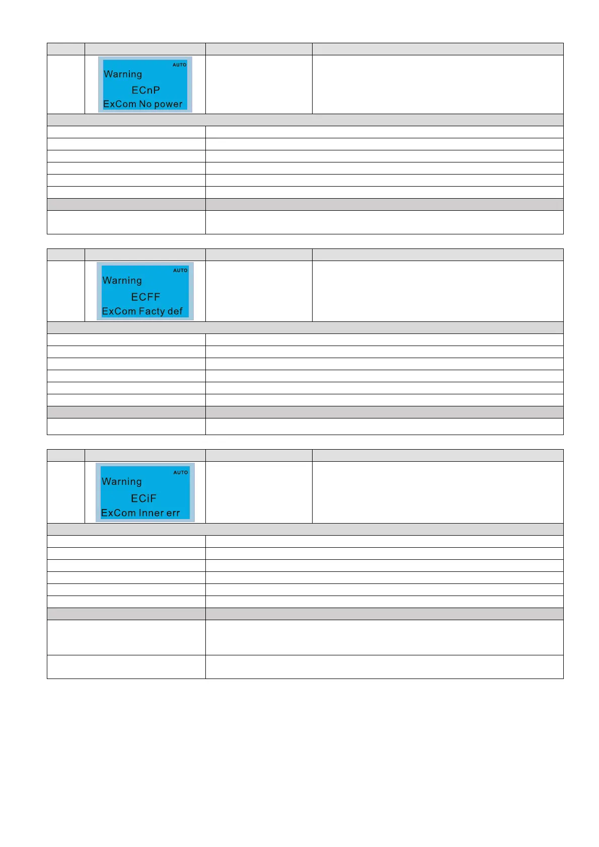 ID No. Display on LCD Keypad Warning Name Description