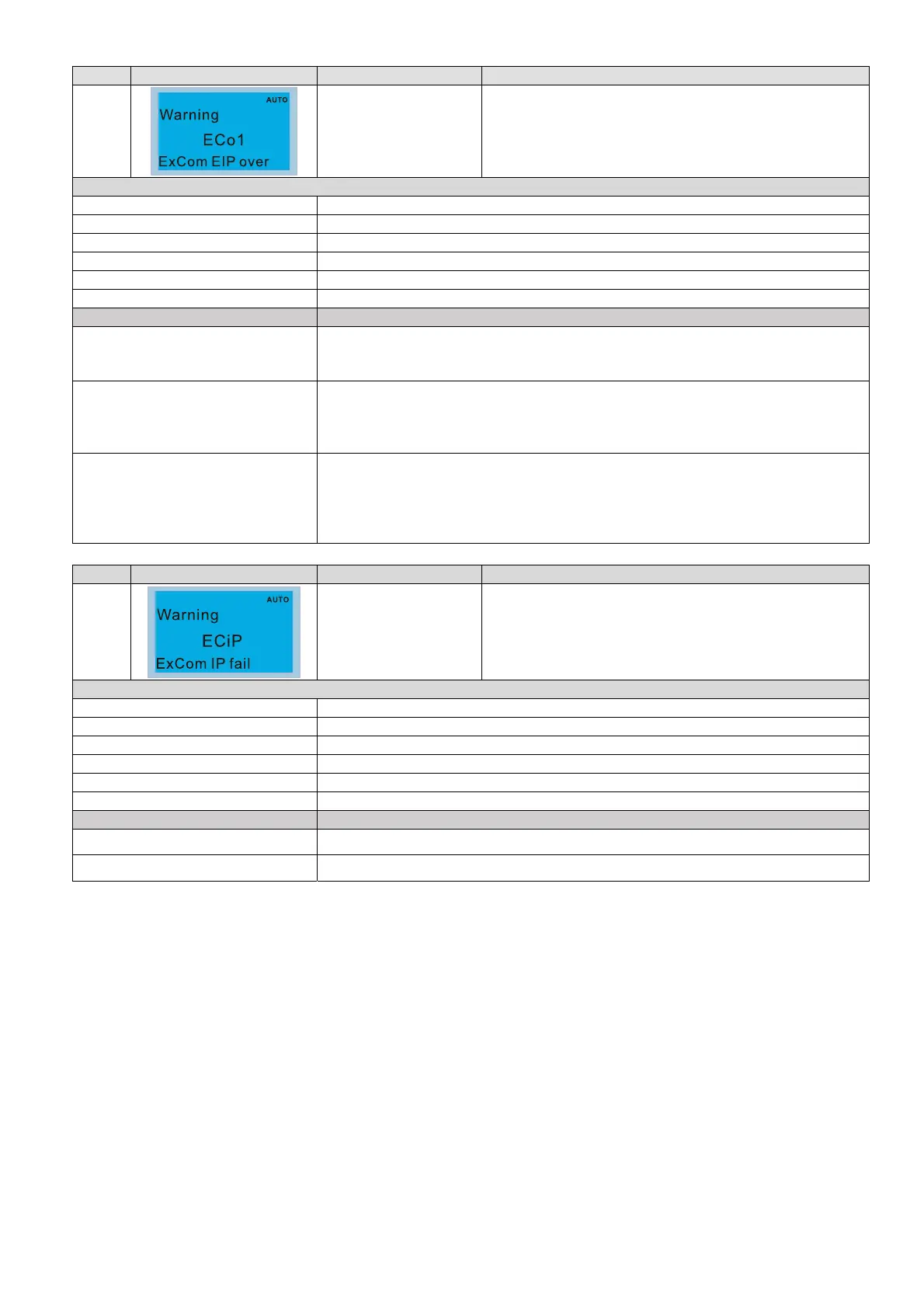 ID No. Display on LCD Keypad Warning Name Description