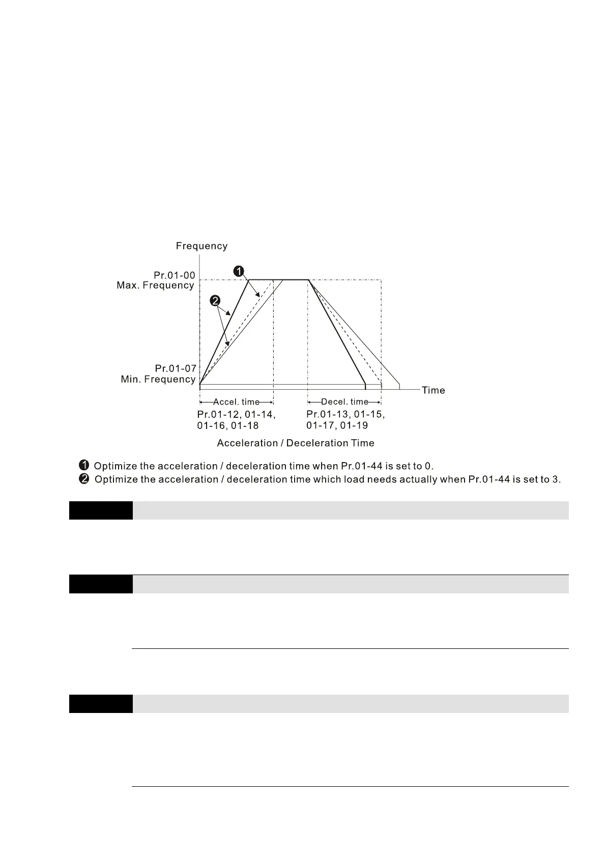 range, the actual acceleration and deceleration time refer to the Pr.01-12–01-19 settings. If the
