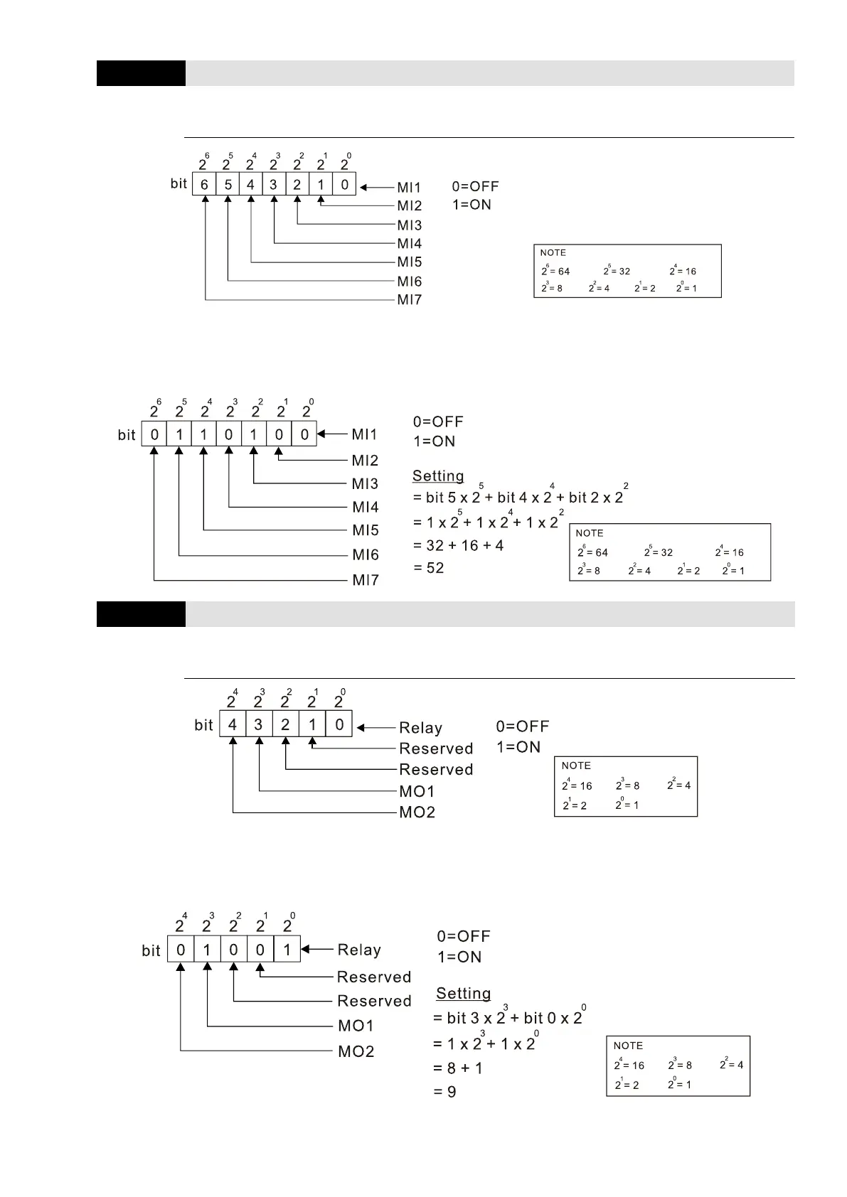 When Pr.02-52 displays 0034h (hex) (that is, the value is 52 (decimal) and 0110100 (binary)), it