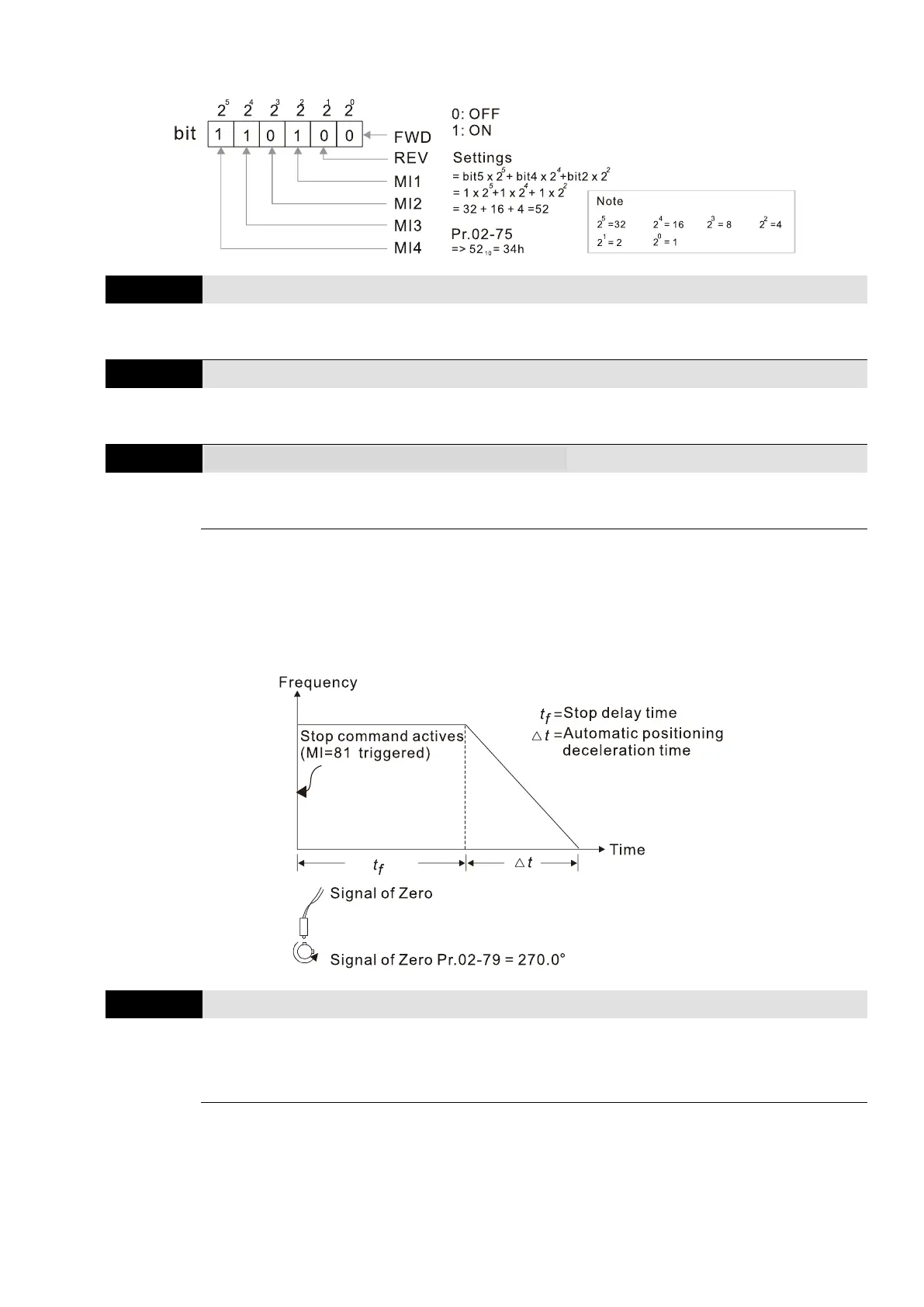 Example: Sets Pr.02-75 = 34h to activate MI1, MI3 and MI4.