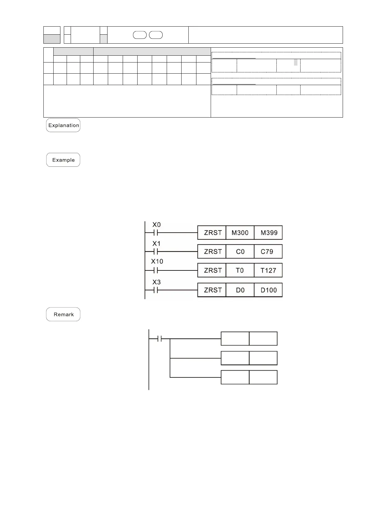 When X3 is ON, clears the data in data registers D0–D100 (sets to 0).