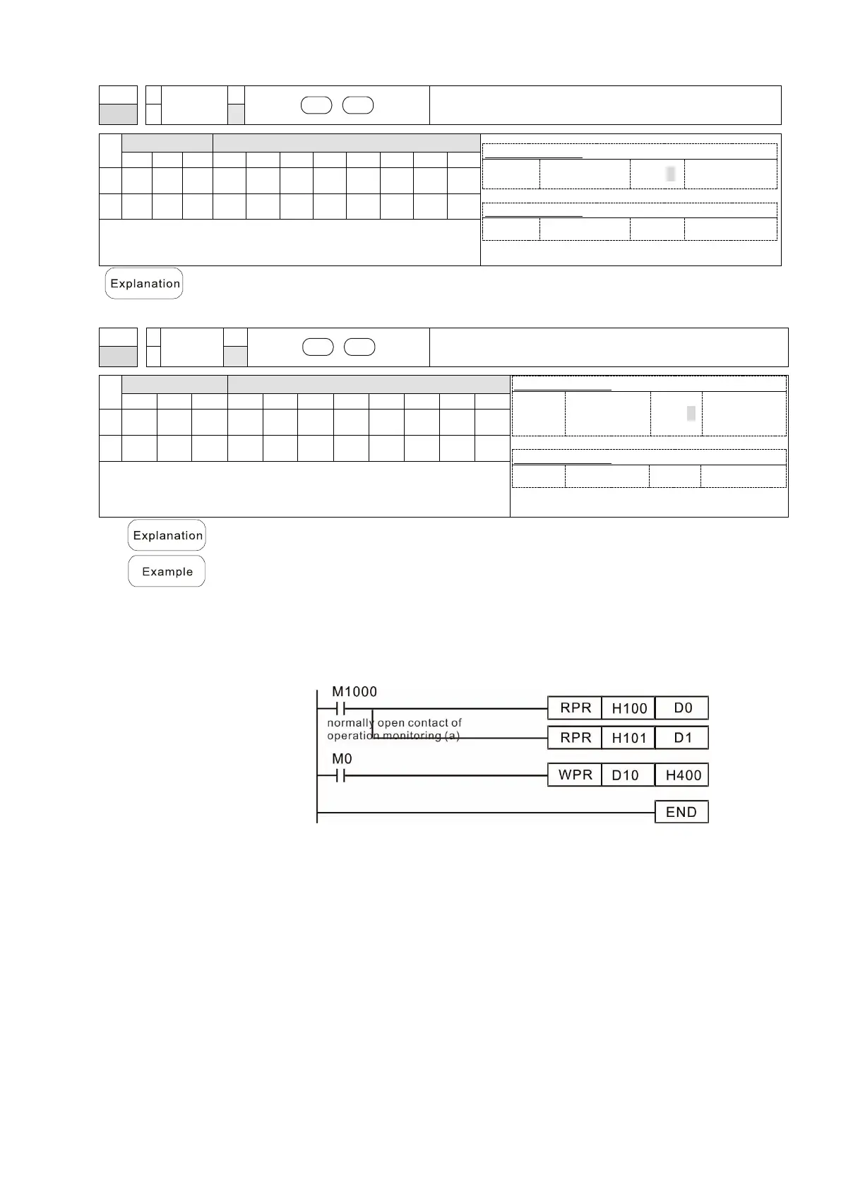 When M0 = ON, the content of D10 is written to the MS300 drive Pr.04.00