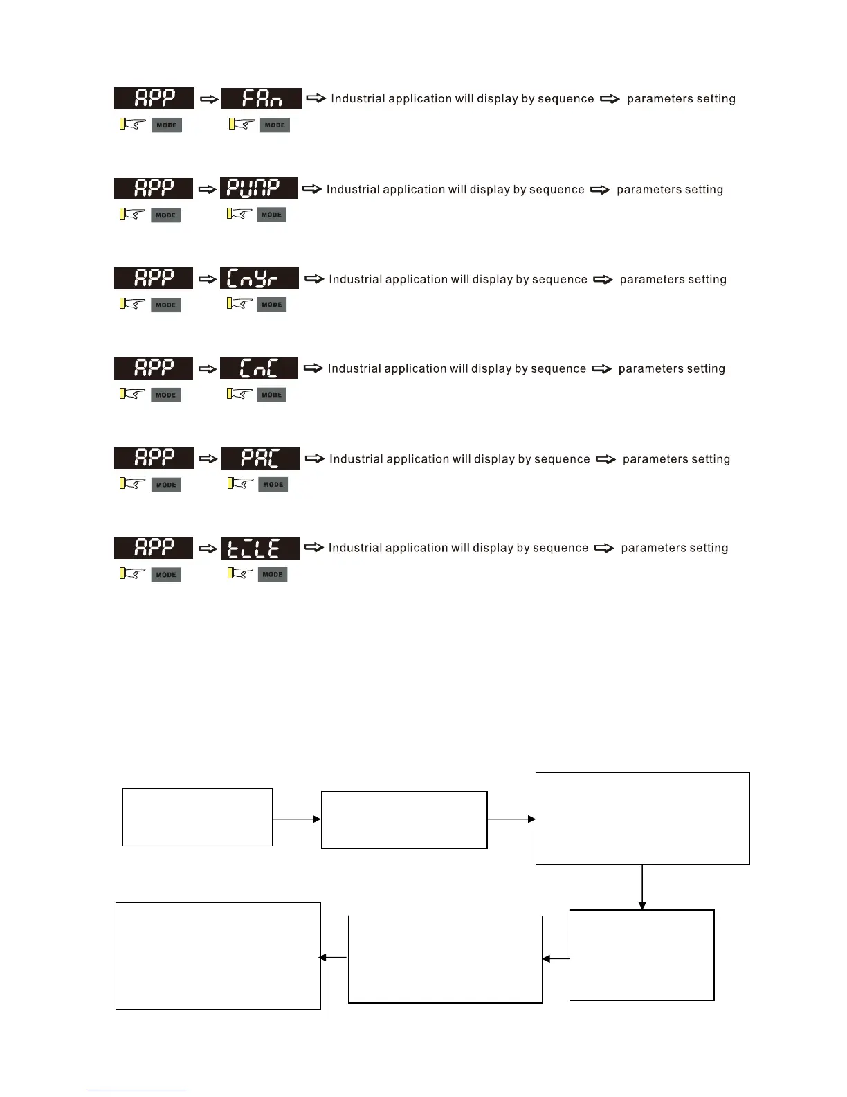 the setting of Pr. 13-00. Then in each selected application, user can view the parameters by pressing