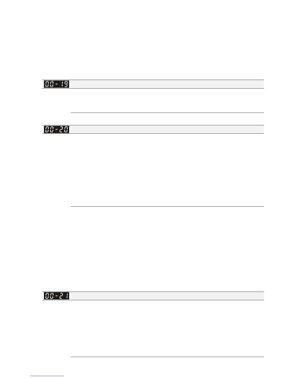 Pr. 00-20 and Pr. 00-21 are for the settings of frequency source and operation source in AUTO