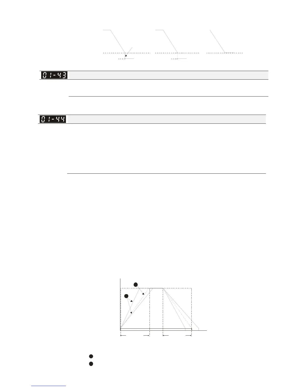 deceleration is in the reasonable range, it will accelerate / decelerate by Pr. 01-12~01-19. If the