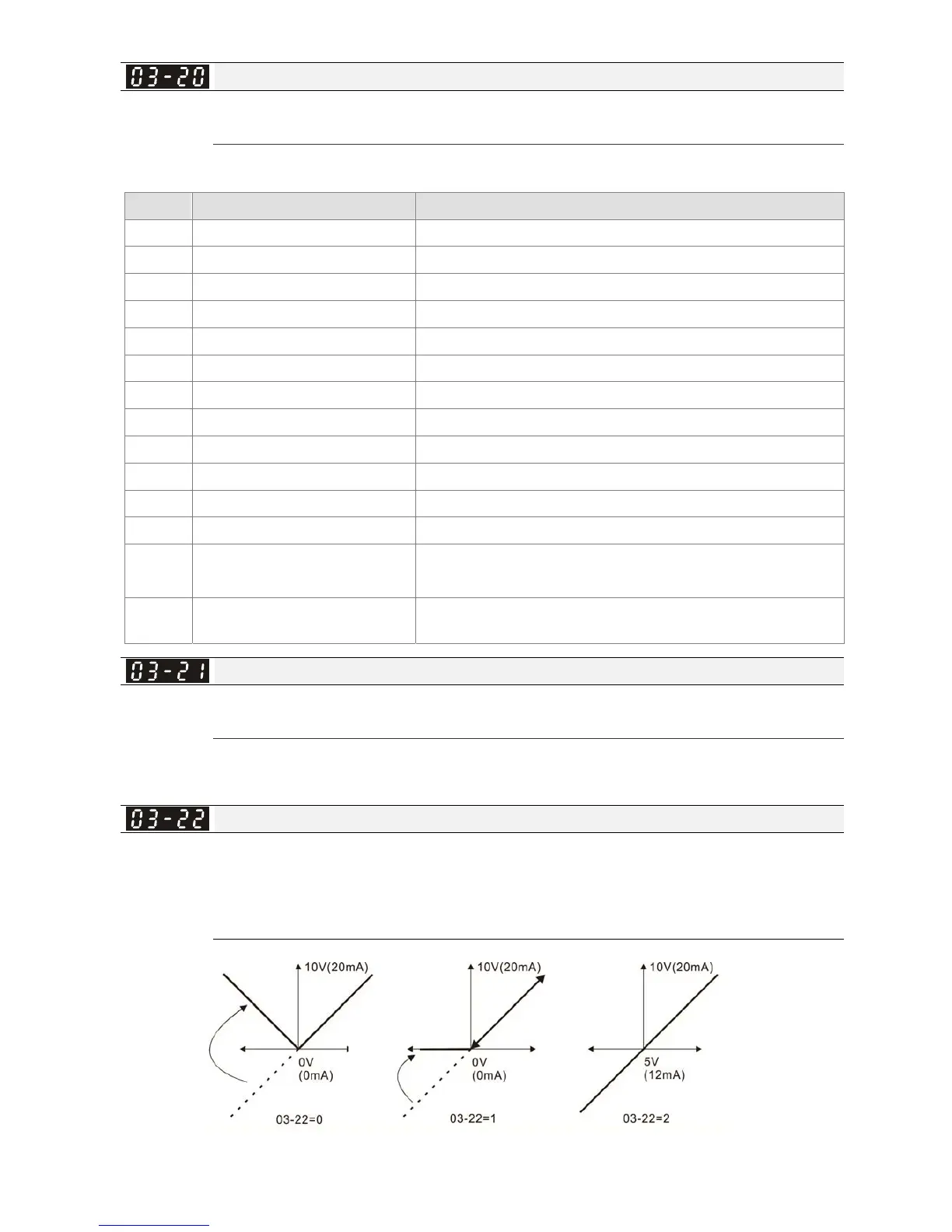0~100 % of Pr. 03-32 corresponds to 0~10V of AFM.