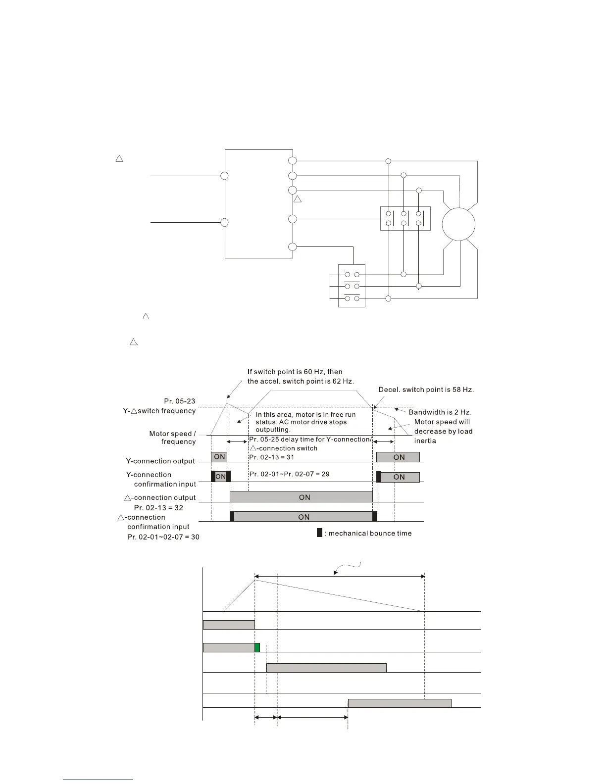 Pr. 05-25 is used to set the switch delay time of Y-connection / -connection.