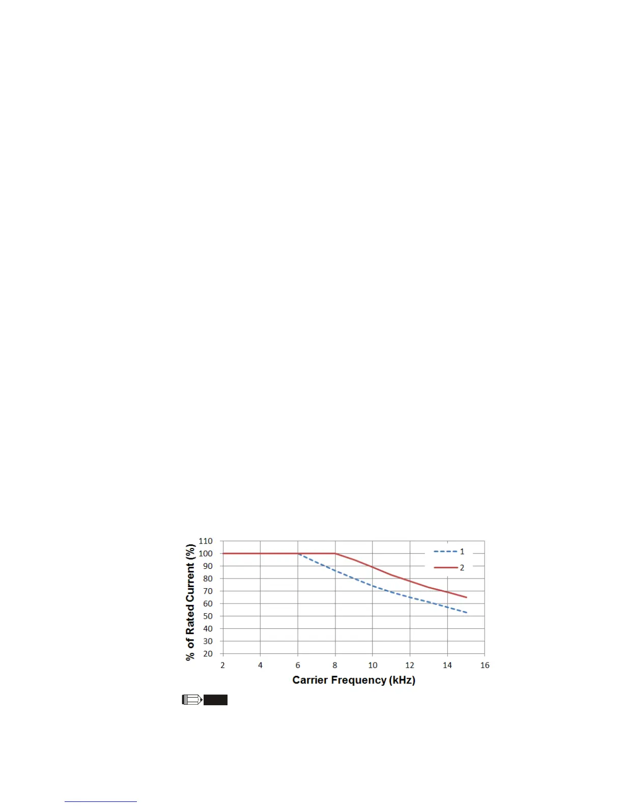 load = 100 % of rated output current (derating curve line 1), if the carrier frequency is to be