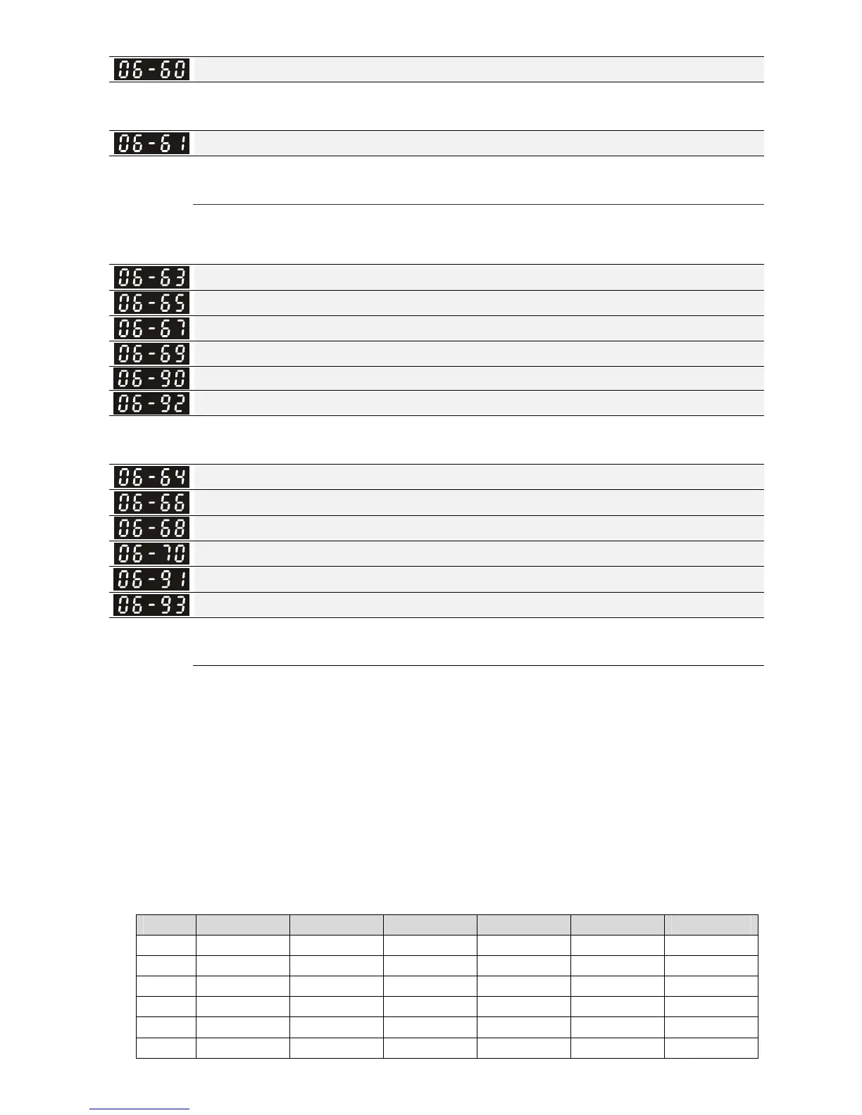 If there is any malfunction when the drive operating, Pr. 06-17~06-22 will record malfunctions,