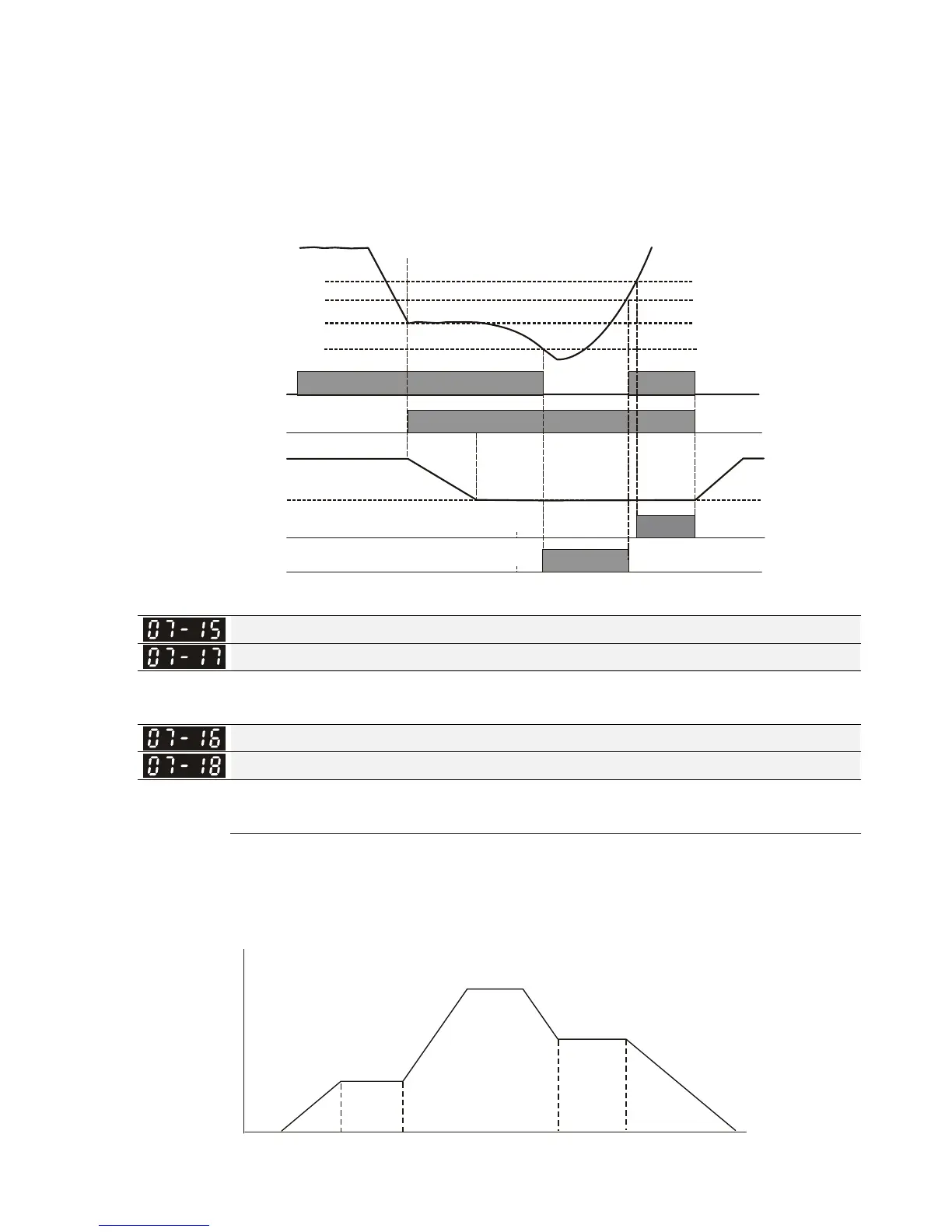 When the load is heavier, use Pr. 07-15 ~ Pr. 07-18 to avoid the protection of OV or OC.