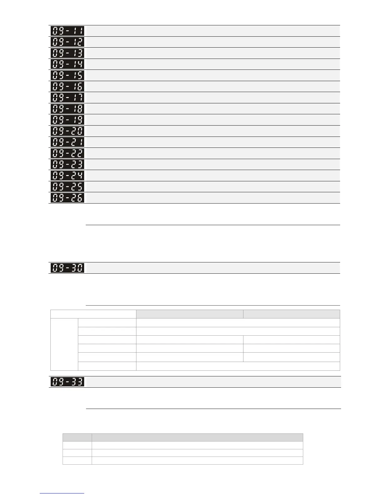 Pr. 09-26). Through communication code 03H, user can use them (Pr. 09-11 to Pr. 09-26) to