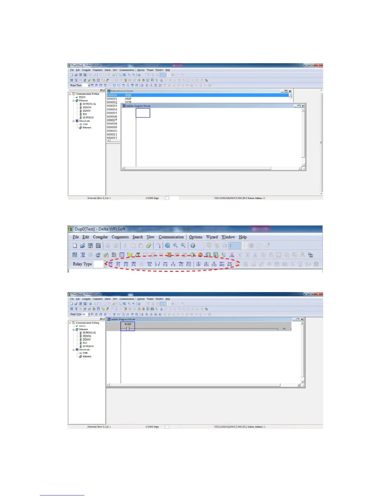 In ladder diagram mode, you can perform program editing using the buttons on the function icon row