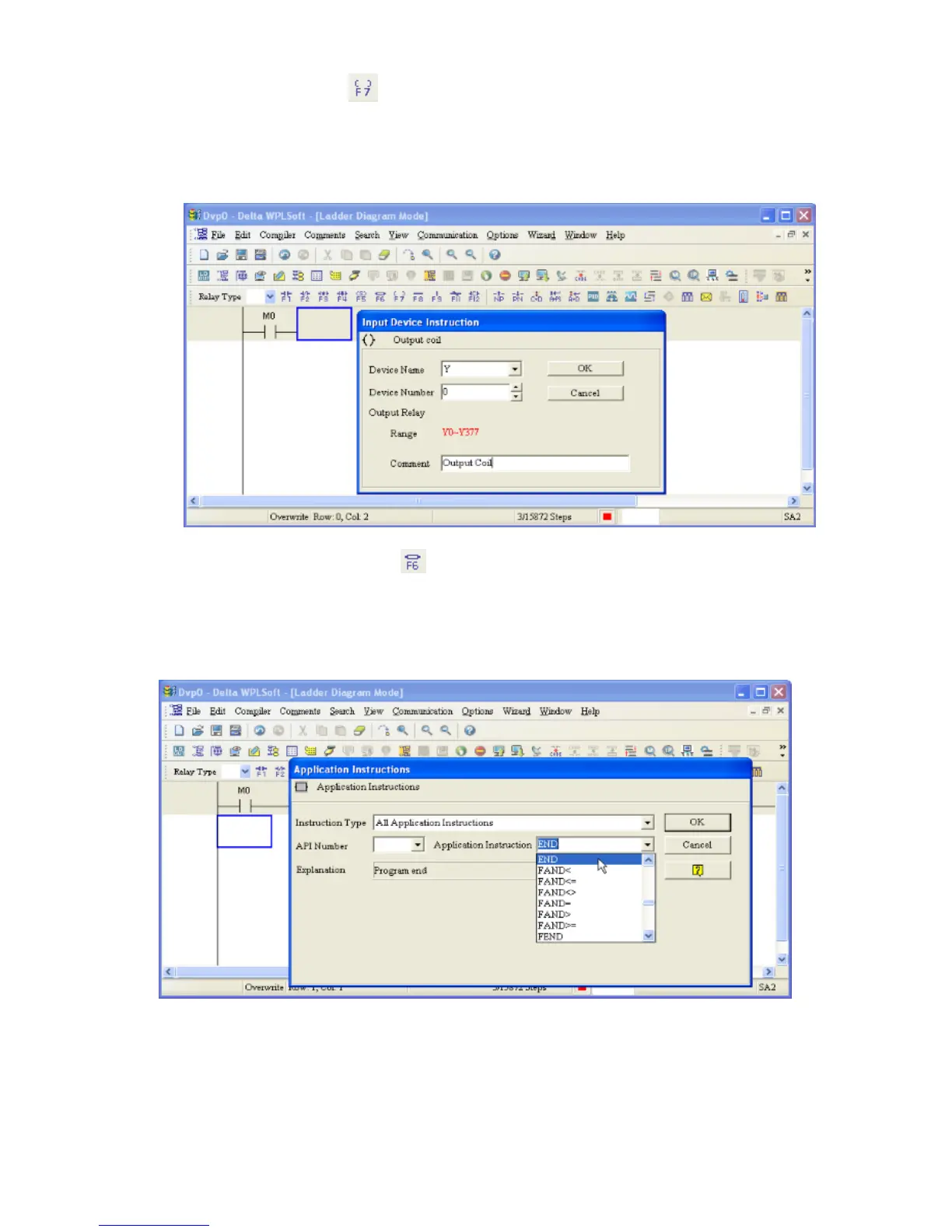 4. Click on the output coil icon or press function key F7. After the name of the input device and