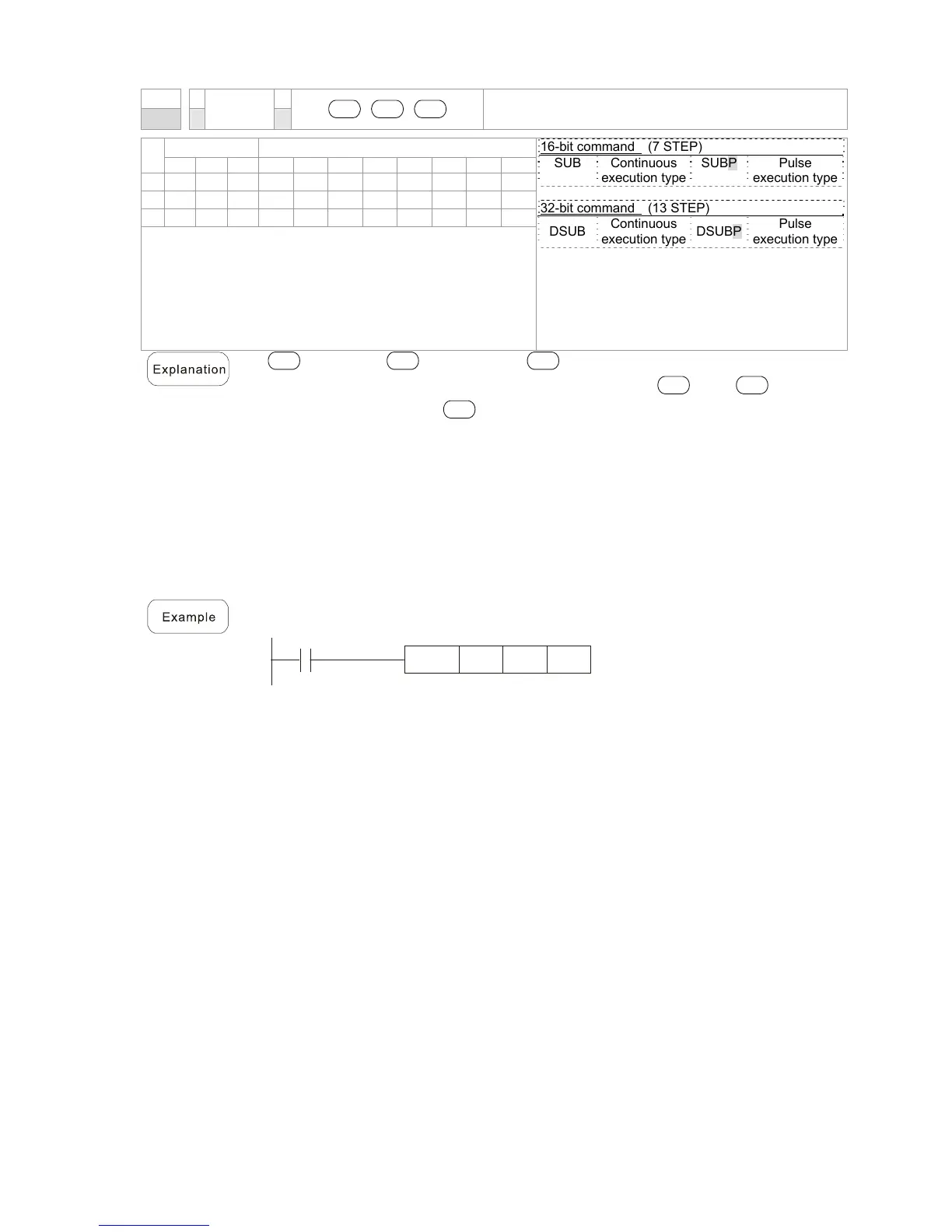 16-bit BIN subtraction: When X0=On, the content of D10 is subtracted from the