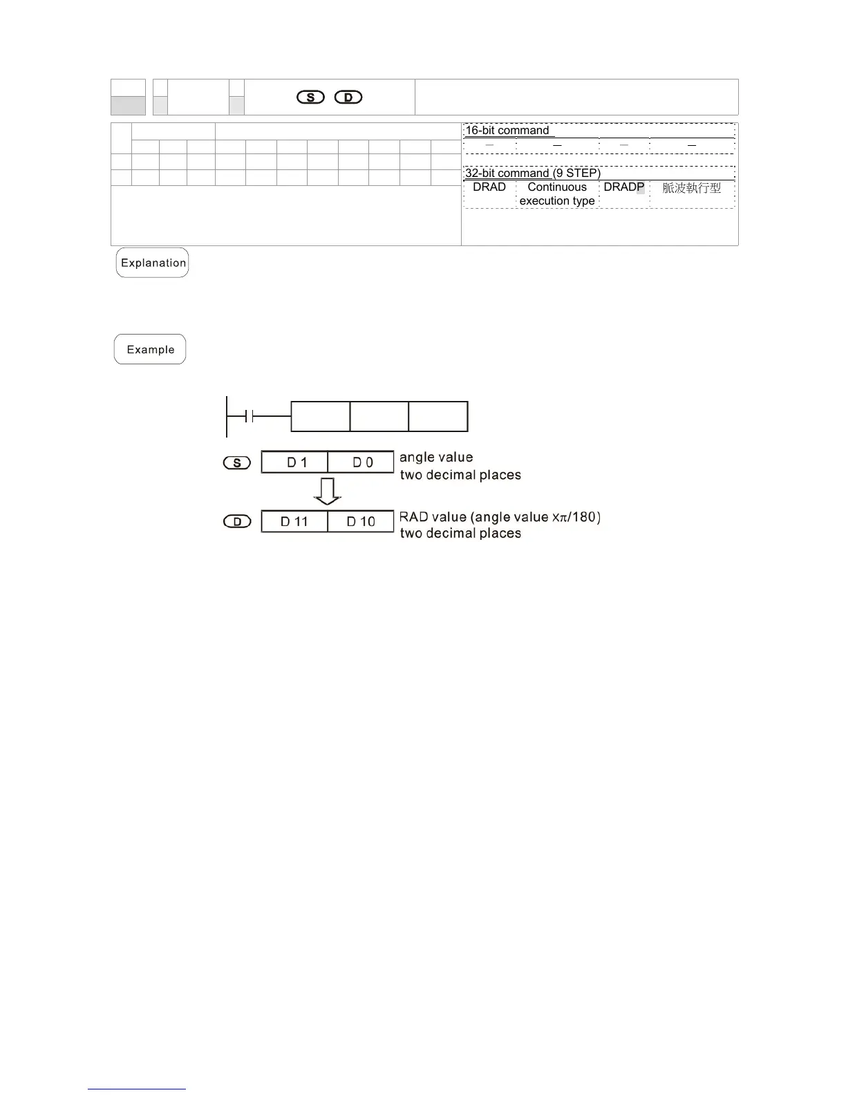 When X0=On, the angle of the designated binary floating point number (D1, D0)