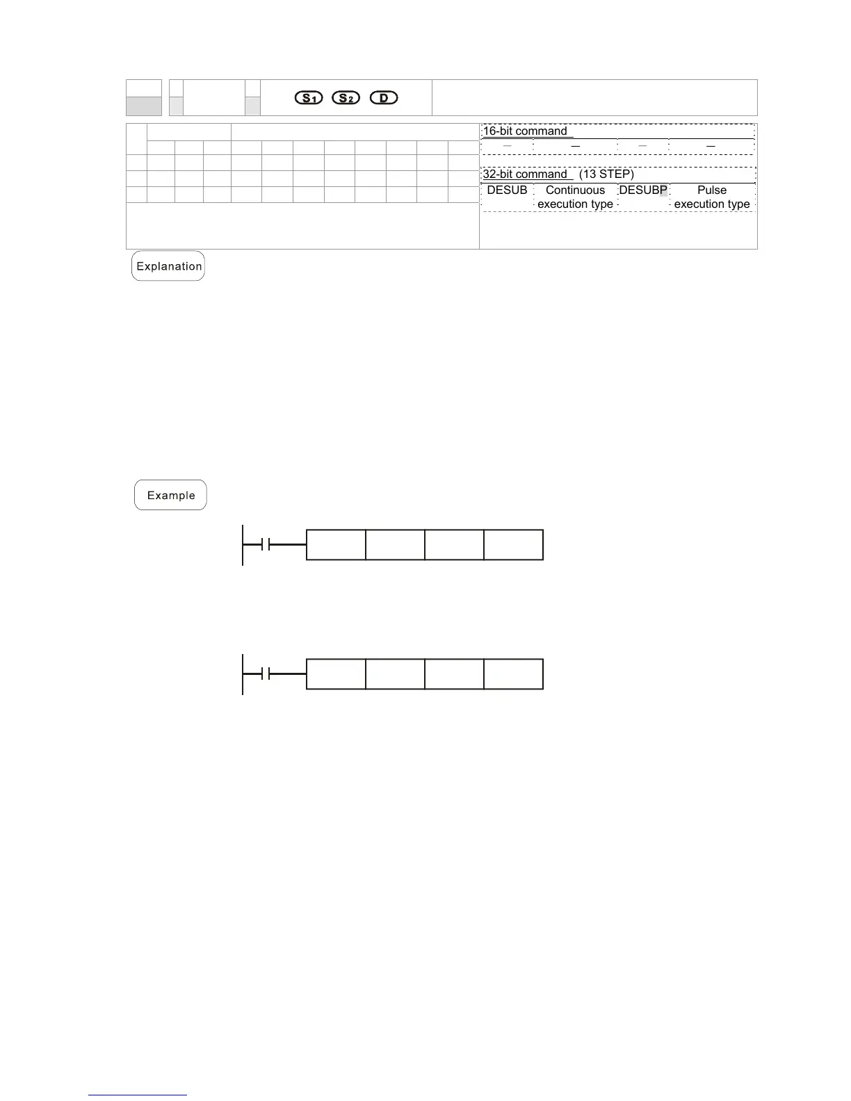 When X0=On, a binary floating point number (D1, D0) will be subtracted to a
