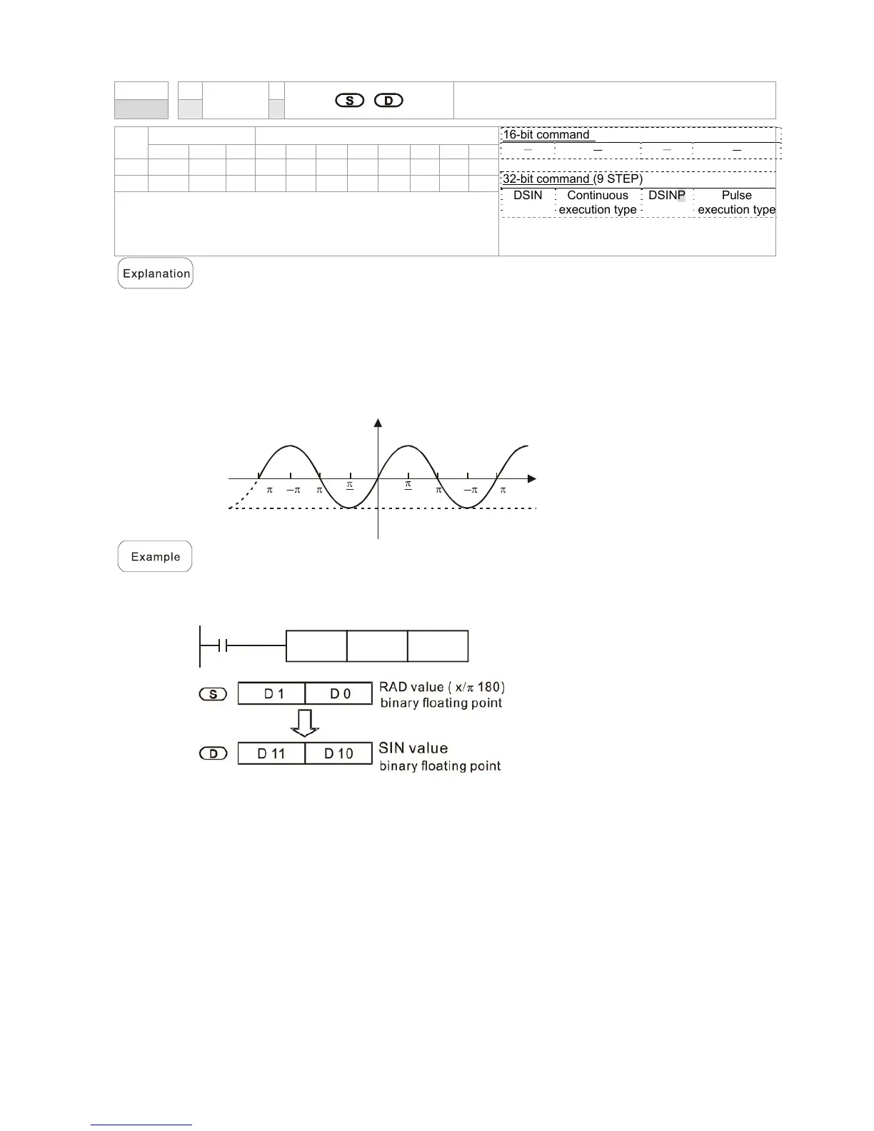 When X0=On, the SIN value of the designated binary floating point number (D1,