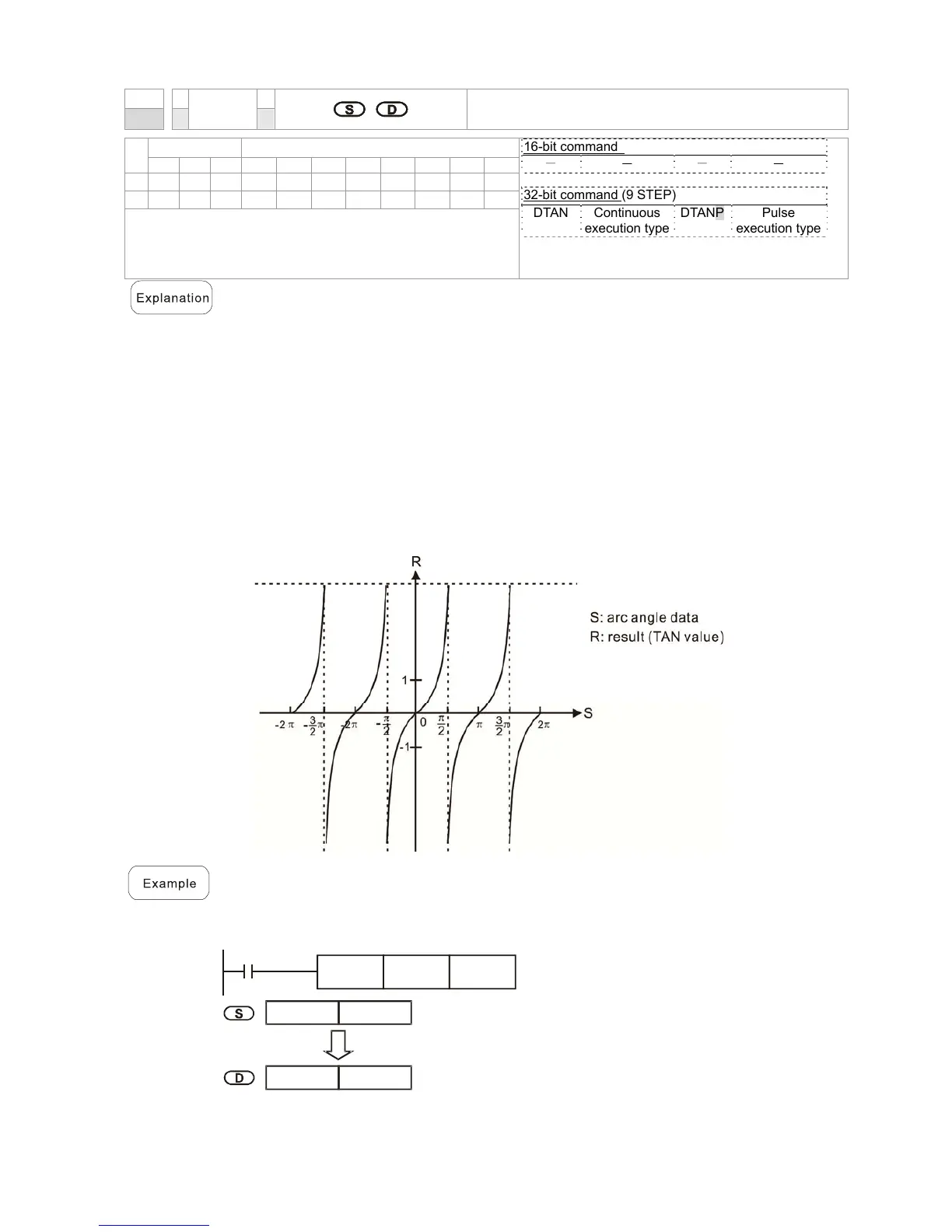 When X0=On, the TAN value of the designated binary floating point number (D1,