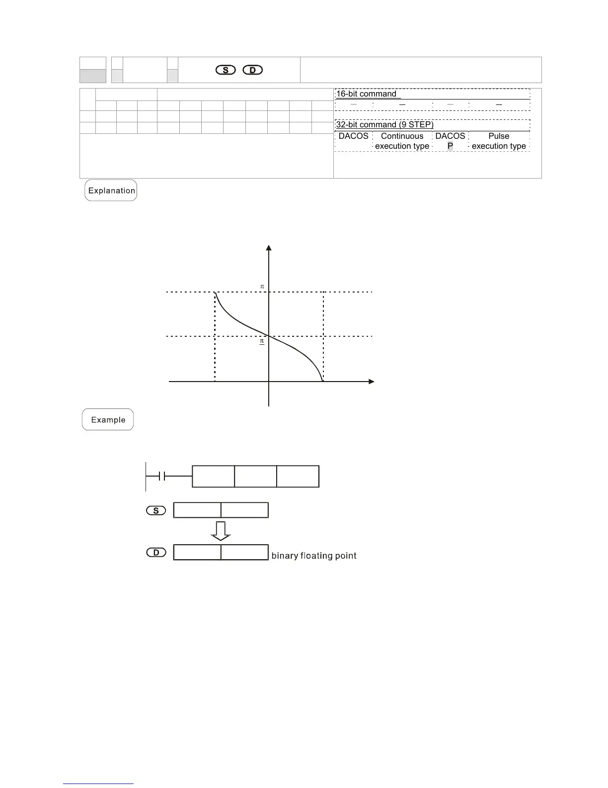 S: the designated source (binary floating point number). D: the ACOS value result.