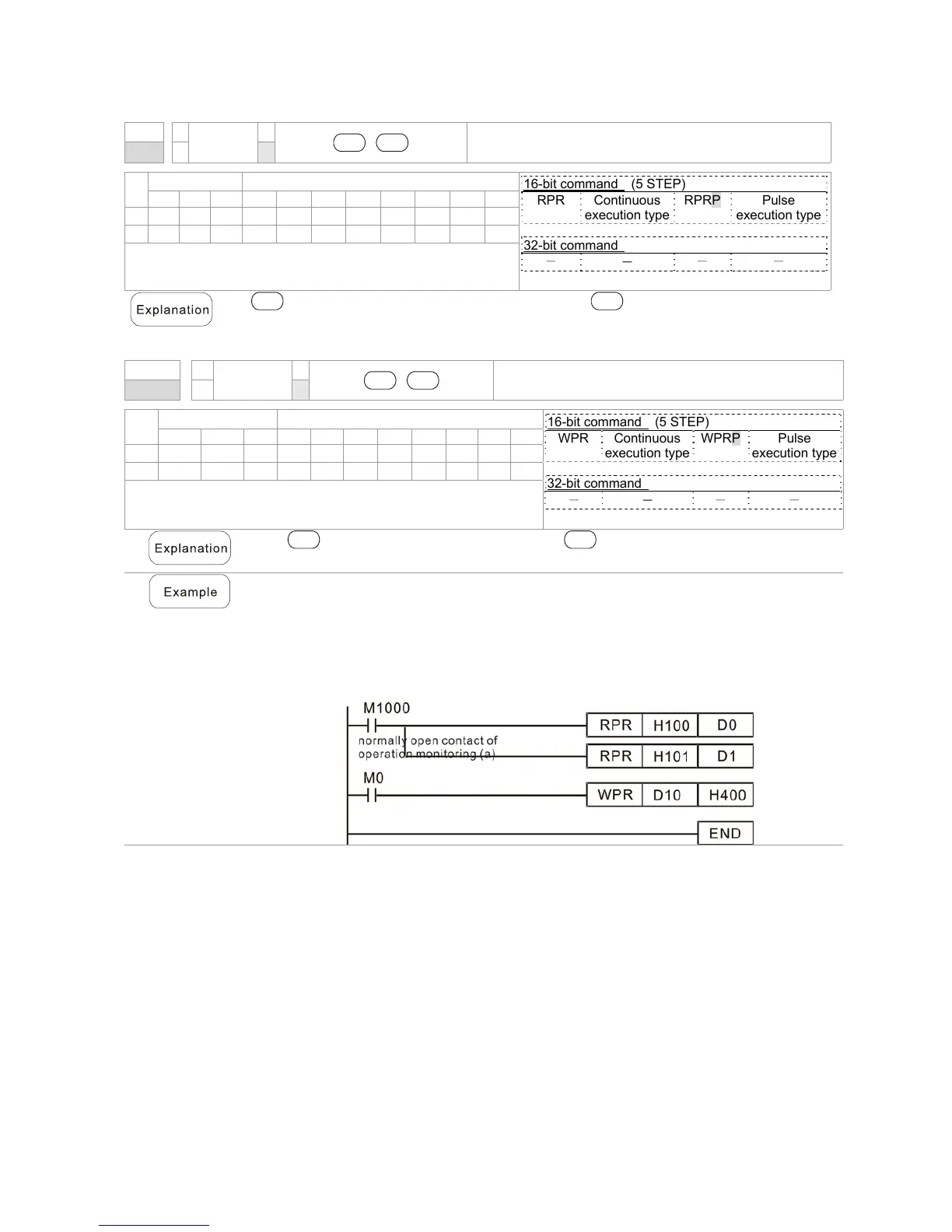When M0=On, the content of D10 will be written to the M300 drive Pr. 04.00