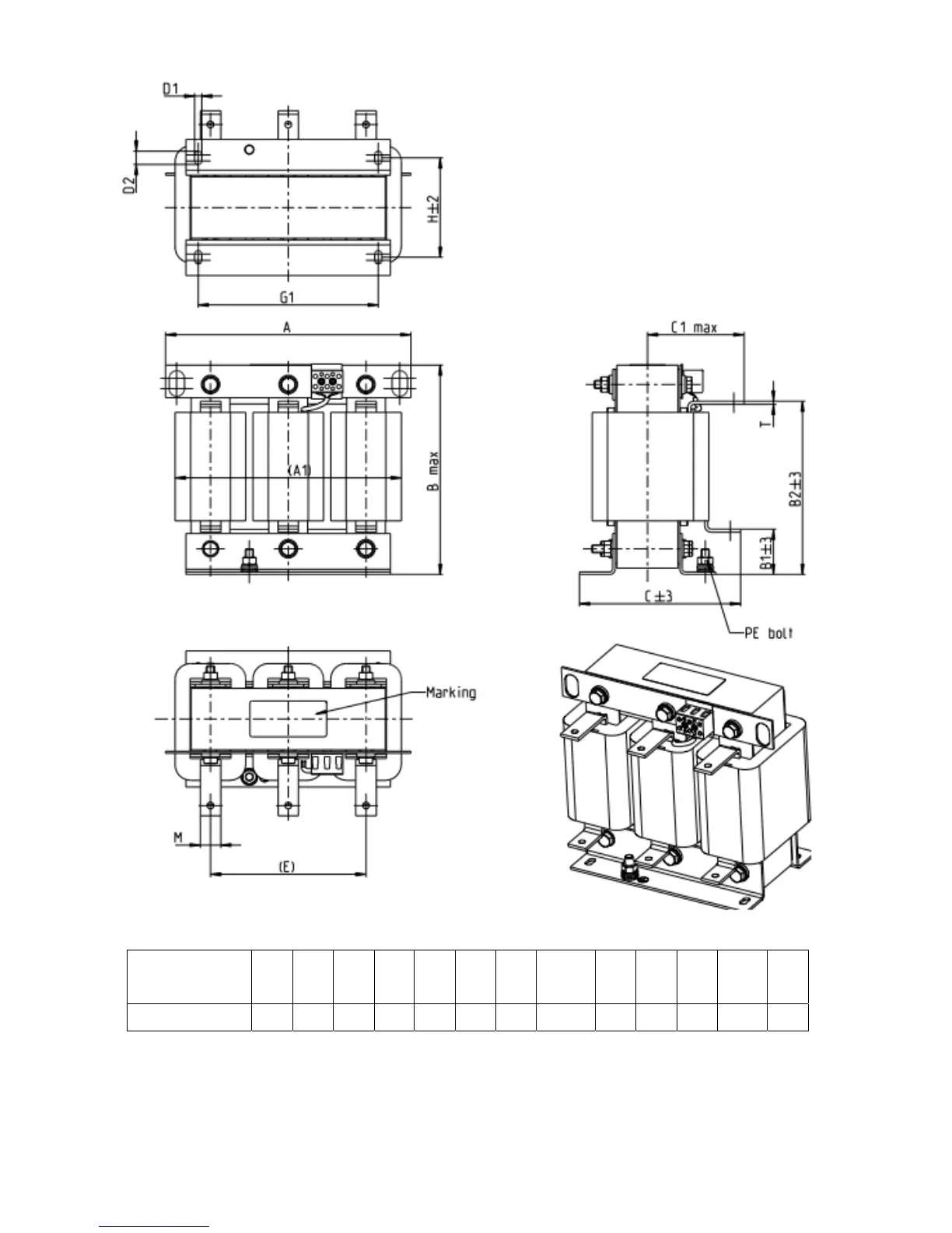 A A1 B B1 B2 C C1 D1*D2 E G1 H M*T PE