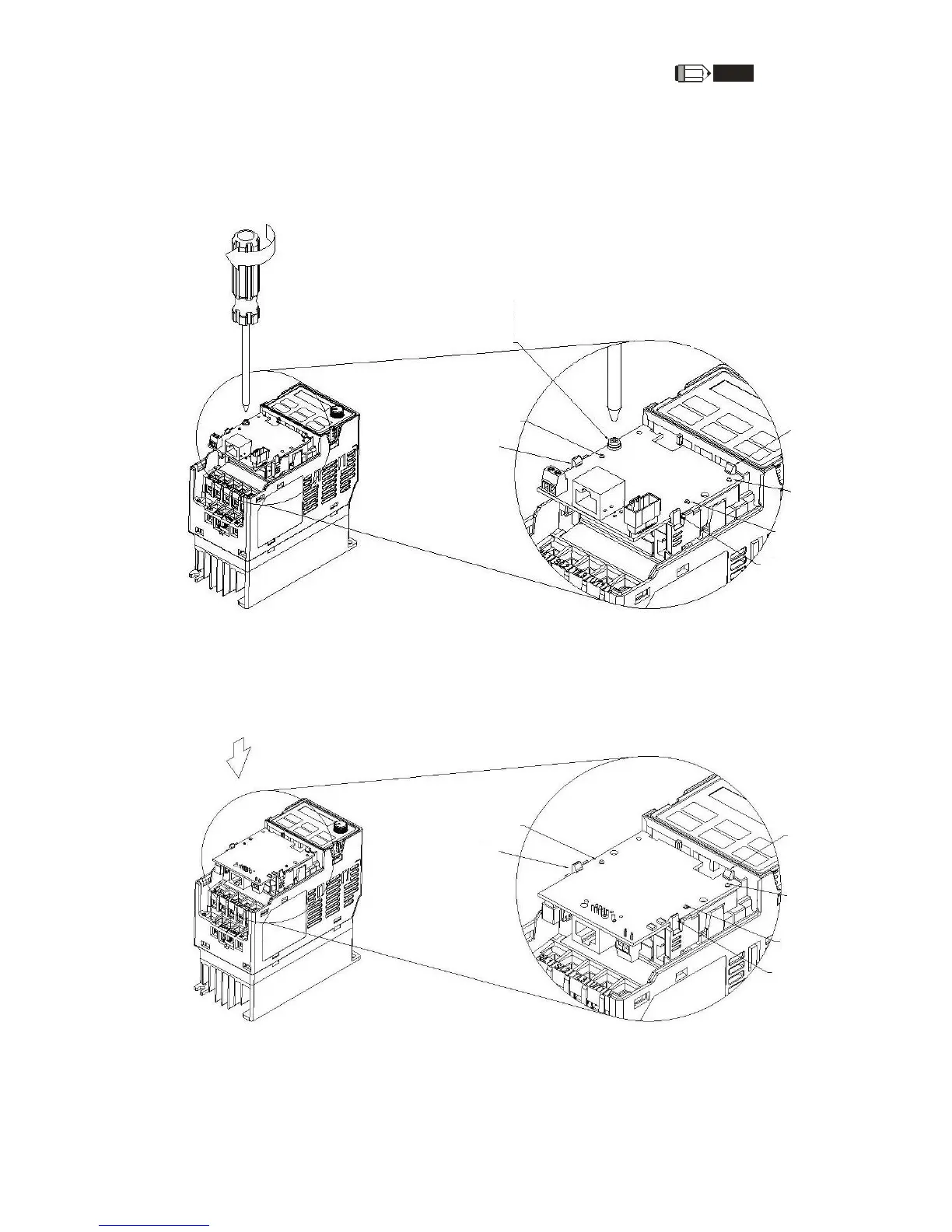 Fasten the screw to fix the option card before wiring (shown in Fig. 8-3). Torque:4~6 kg-cm