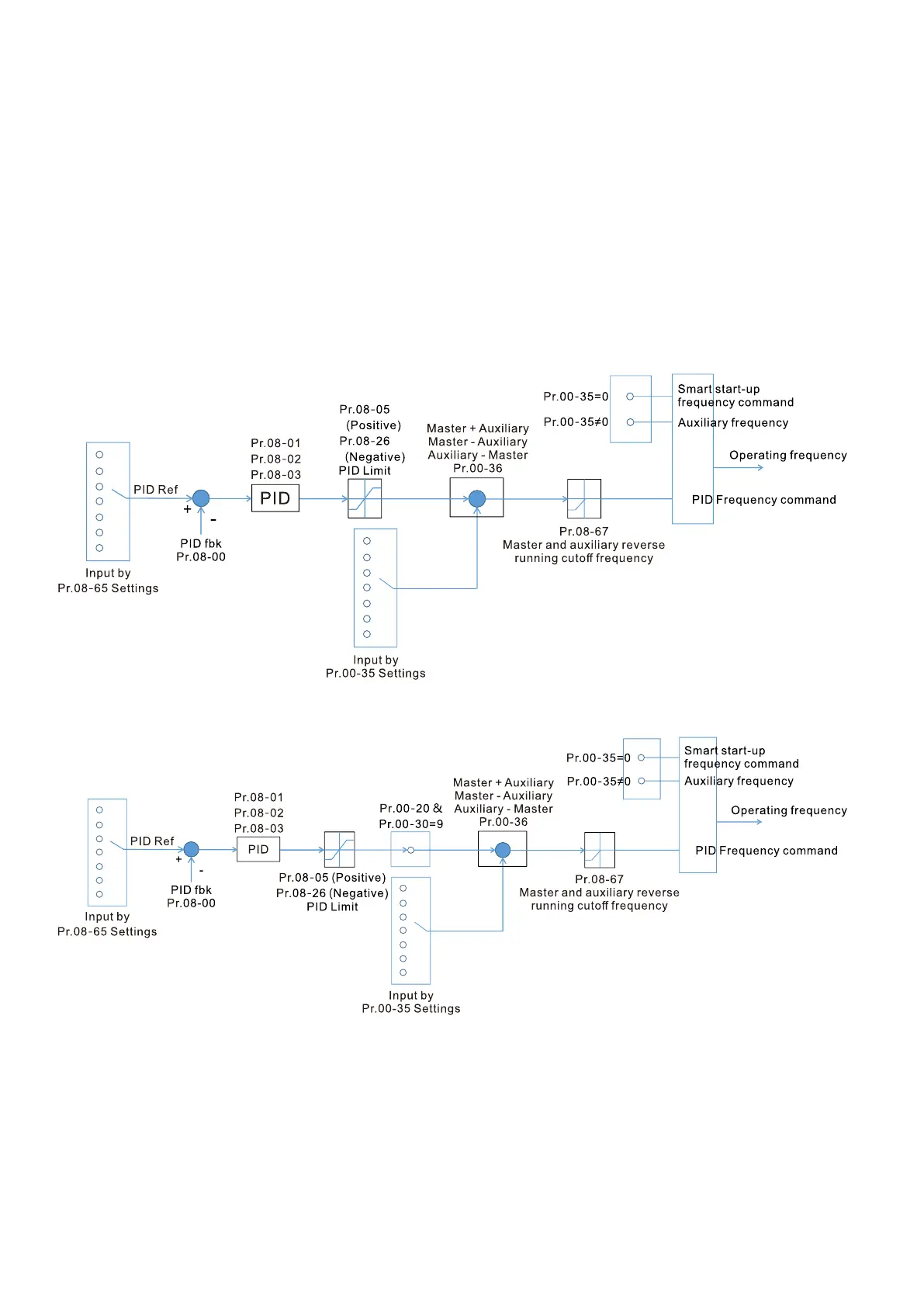 When Pr.08-65 = 0, the PID controller architecture shows as the diagram below: