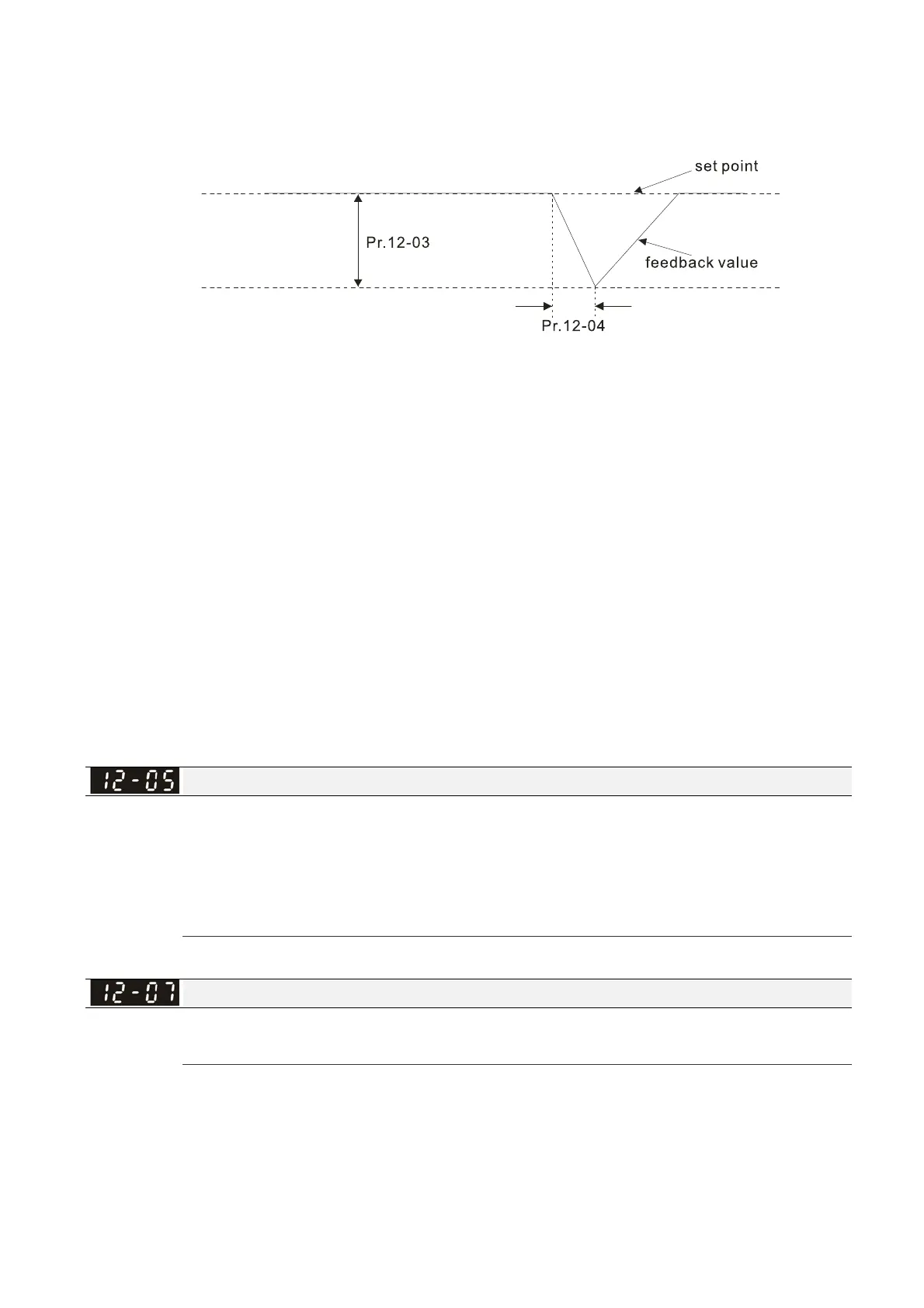 When the change of feedback value is less than the settings for Pr.12-03 and Pr.12-04, the liquid