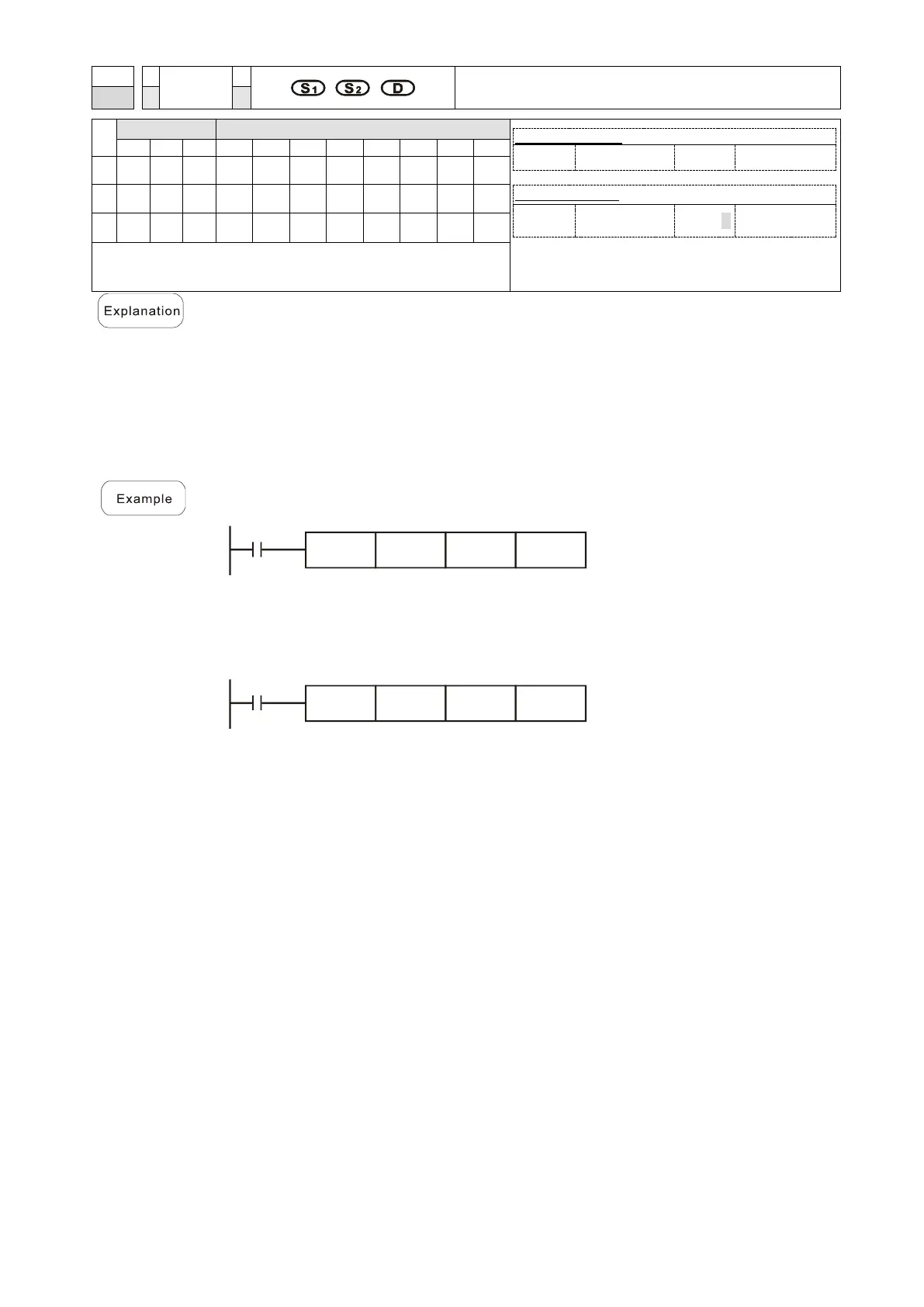 When X1 = ON, divides the binary floating point number (D1, D0) by the binary