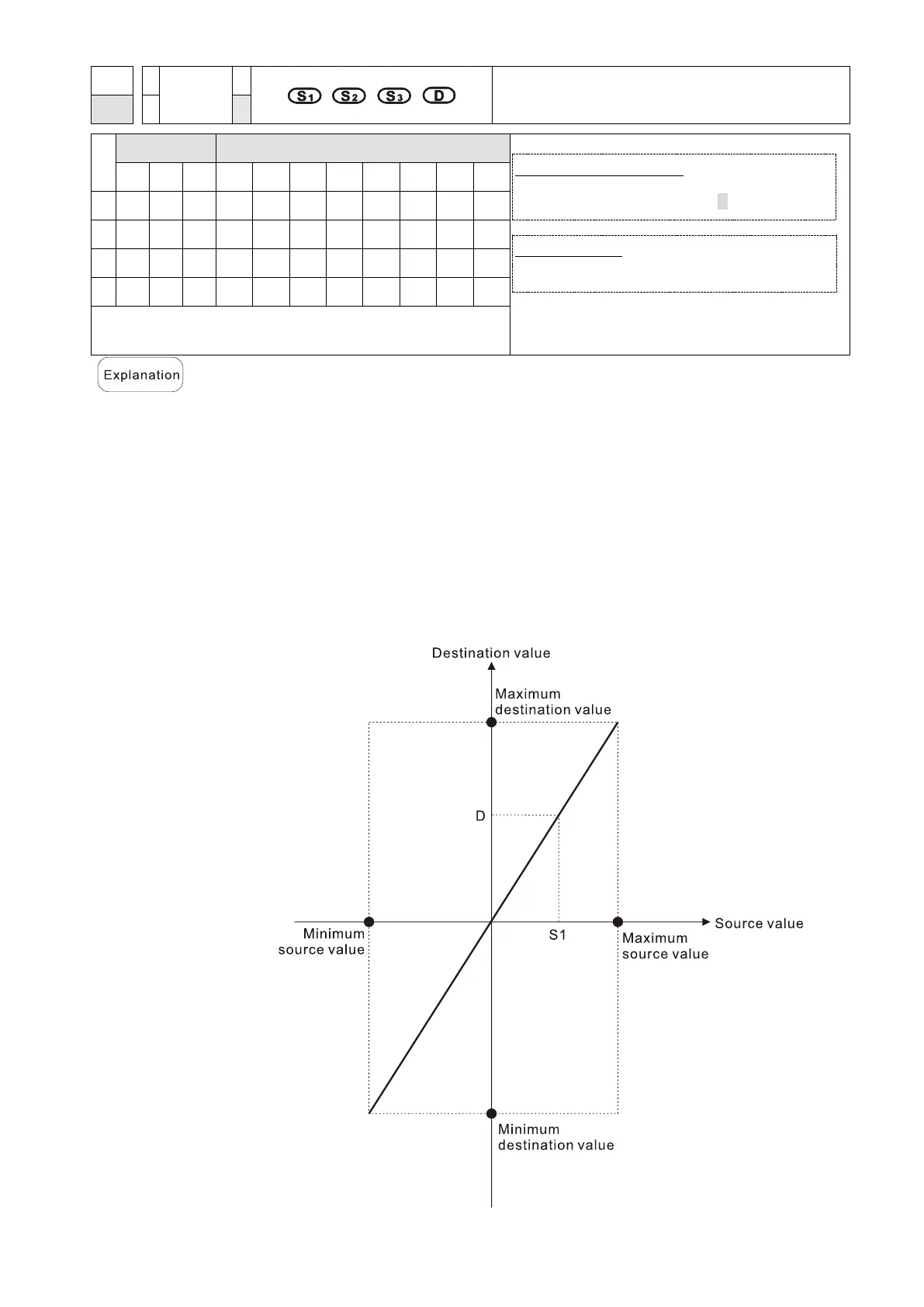 S1: Data source. S2: Slope, unit: 0.001. S3: Offset. D: Destination device.