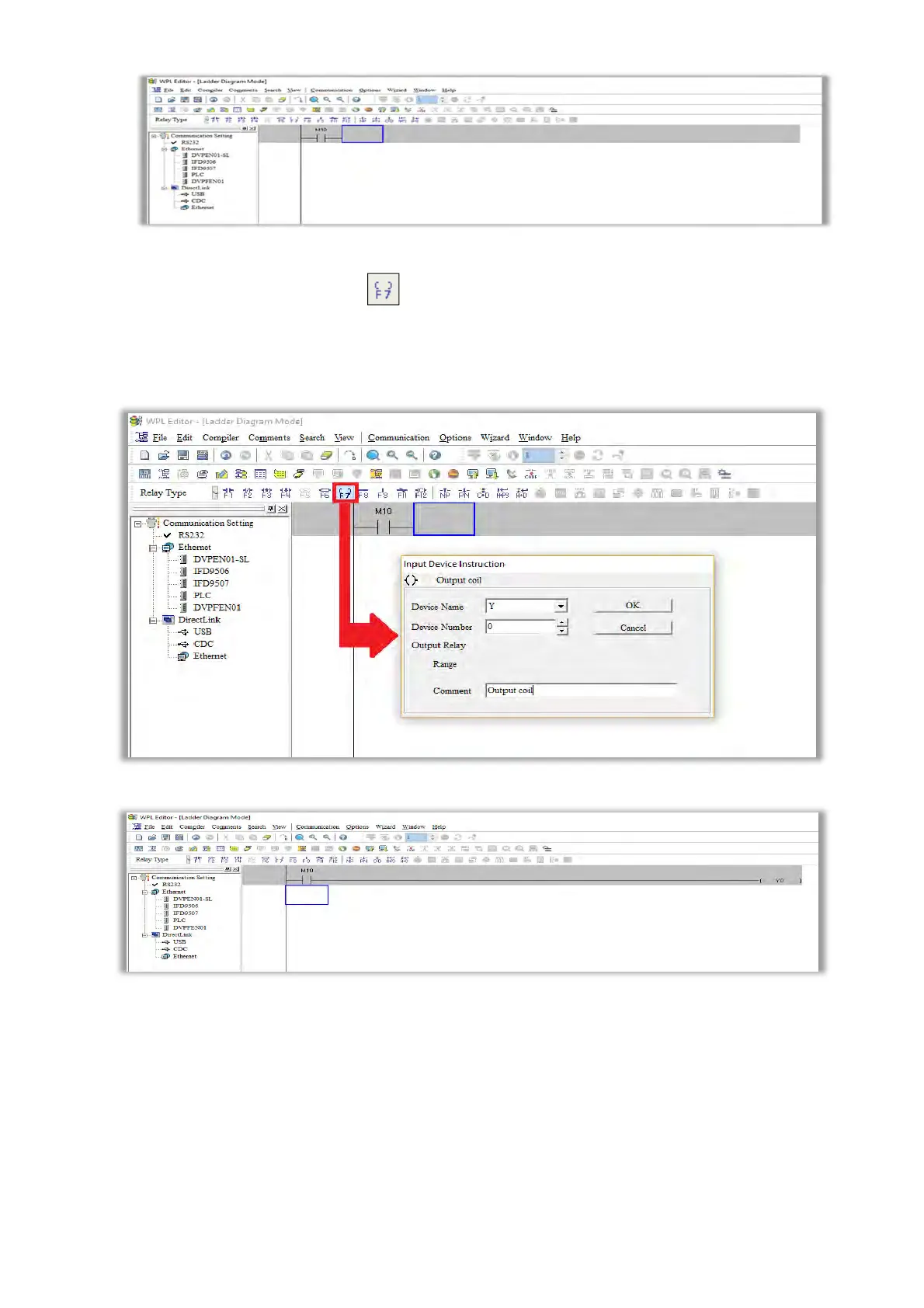 Step 3: Click on the output coil icon or press function key F7. After the name of the input