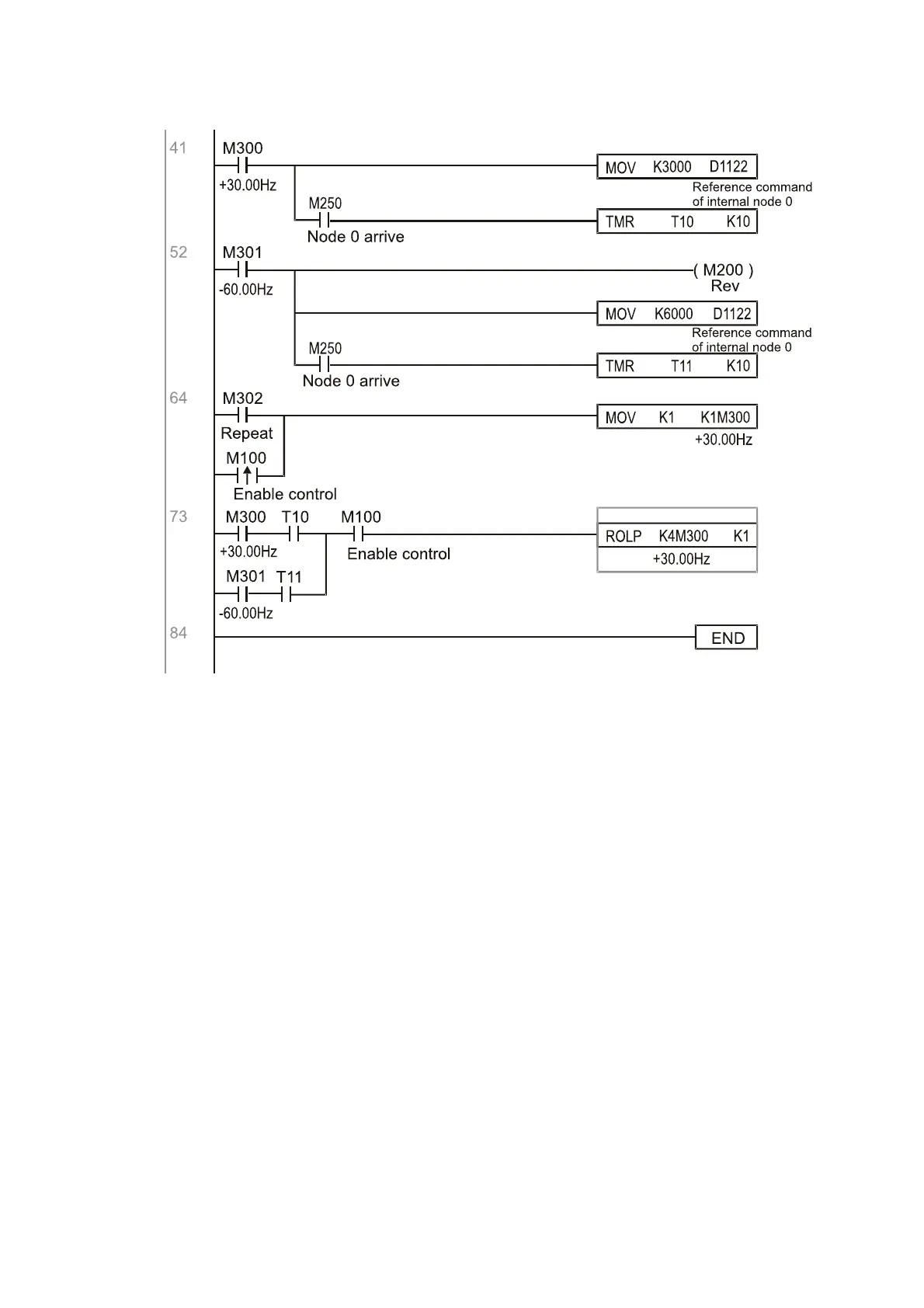 It is required slave station 1 maintains forward rotation at 30.00Hz for 1 sec., and maintains reverse