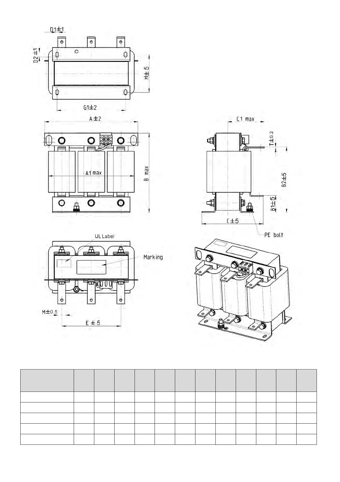 A A1 B B1 B2 C C1 D1*D2 E G1 H M*T