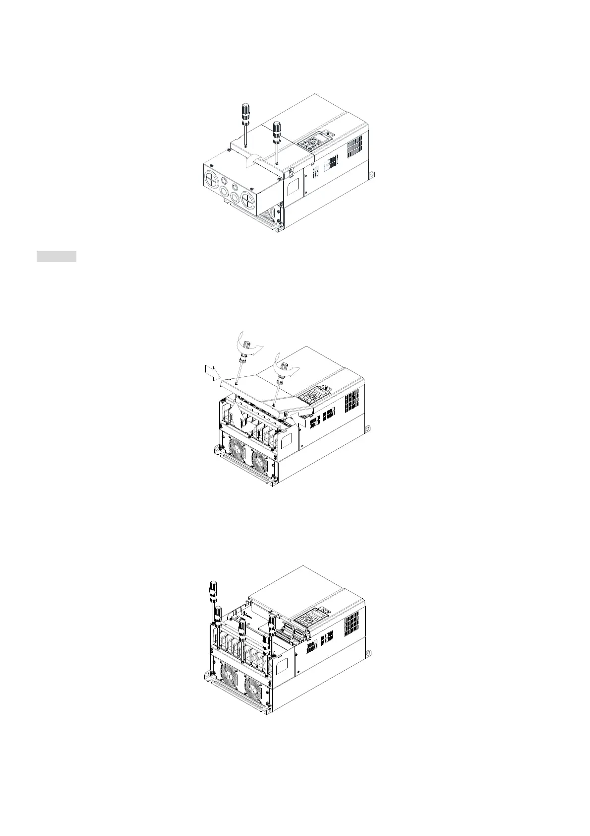 1. Loosen the cover screws and press the tabs on each side of the cover to remove the cover, as shown in the