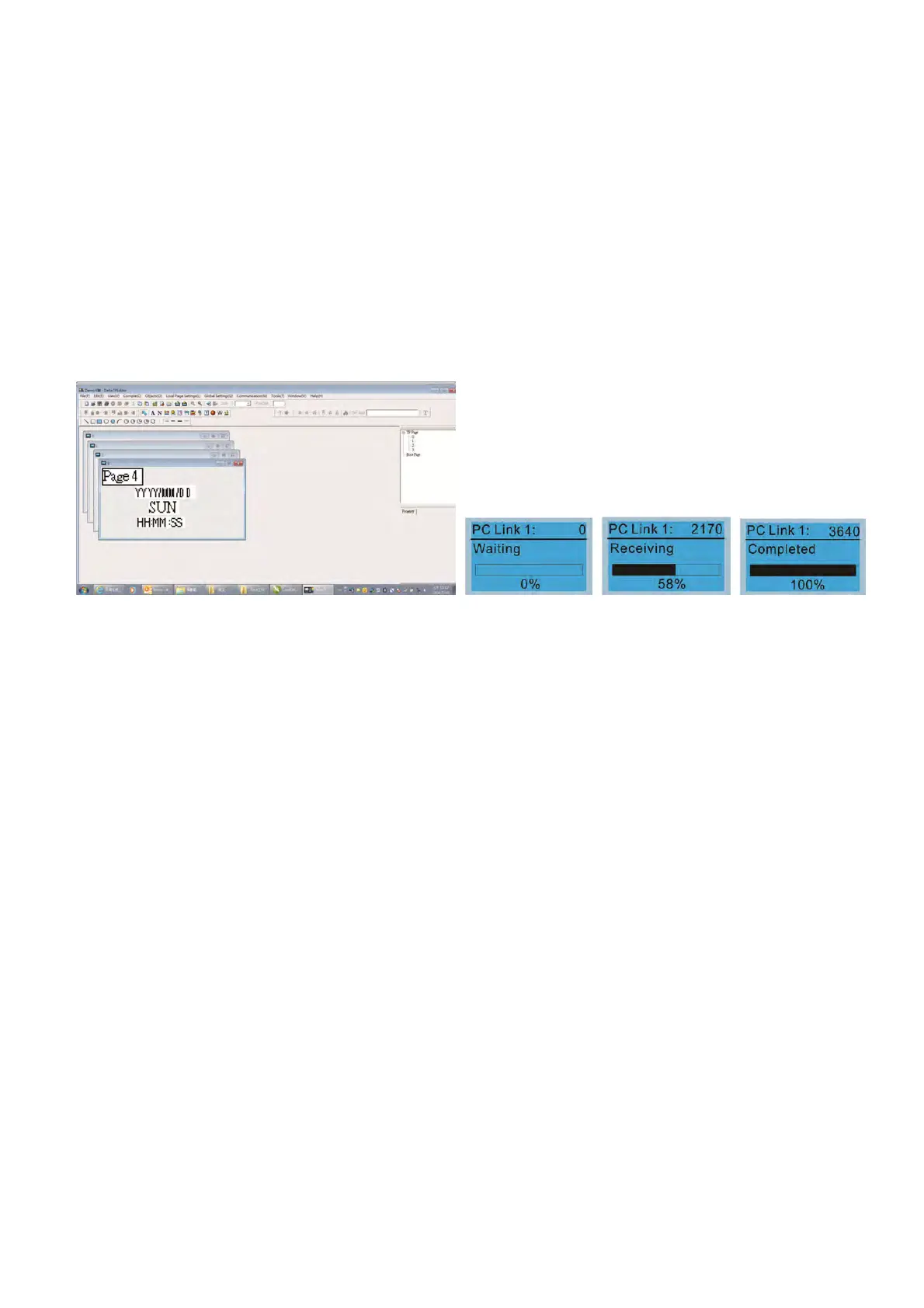 Then press ENTER on the keypad. The screen displays “Waiting”. In TPEditor, choose a page that you
