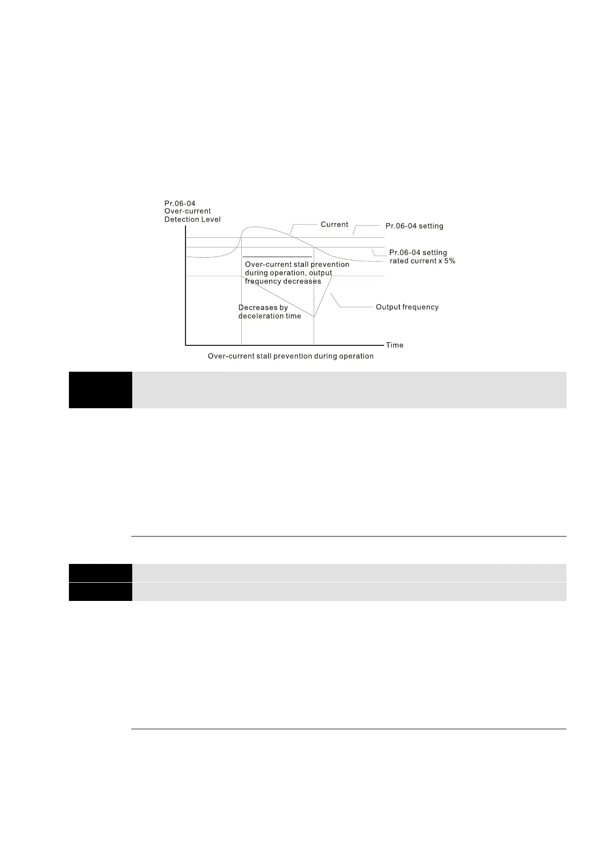 If the output current exceeds the setting value for Pr.06-04 when the drive is operating, the drive