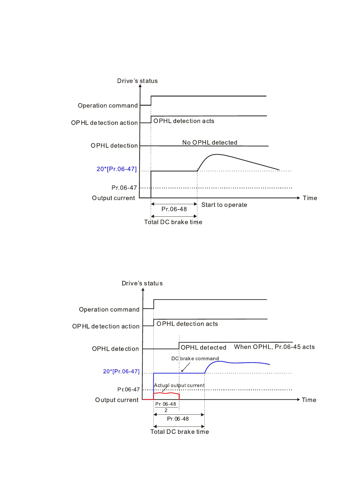 In this period, if an OPHL occurs within the time for Pr.06-48, the drive executes the Pr.06-45
