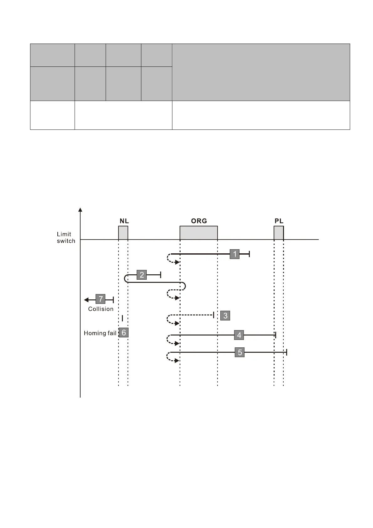 2. If no negative limit switch signal is encountered in the homing process mentioned above, and time-