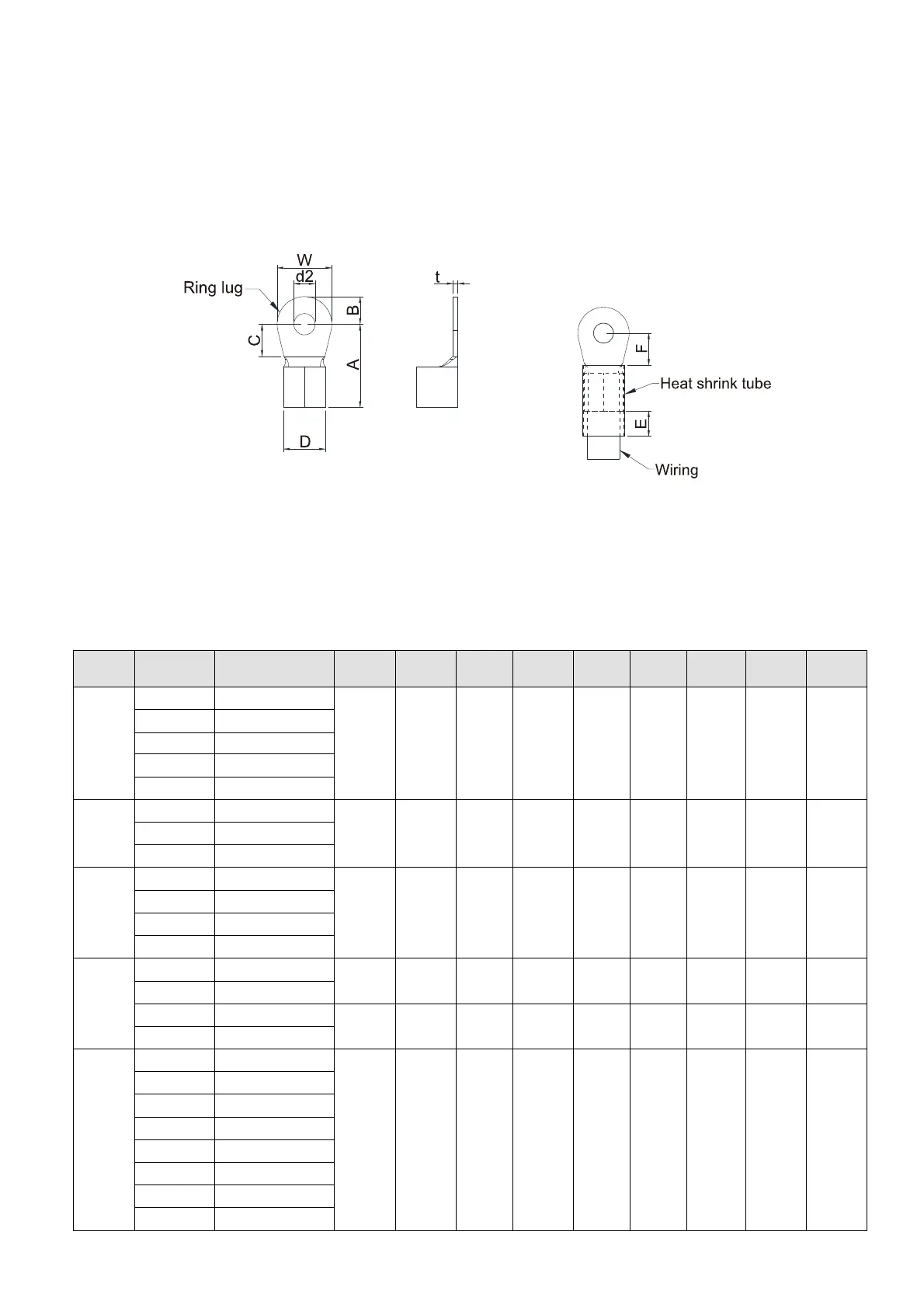 Use the specified ring lug for main circuit terminal wiring. See figure 5-10 and figure 5-11 for ring lug