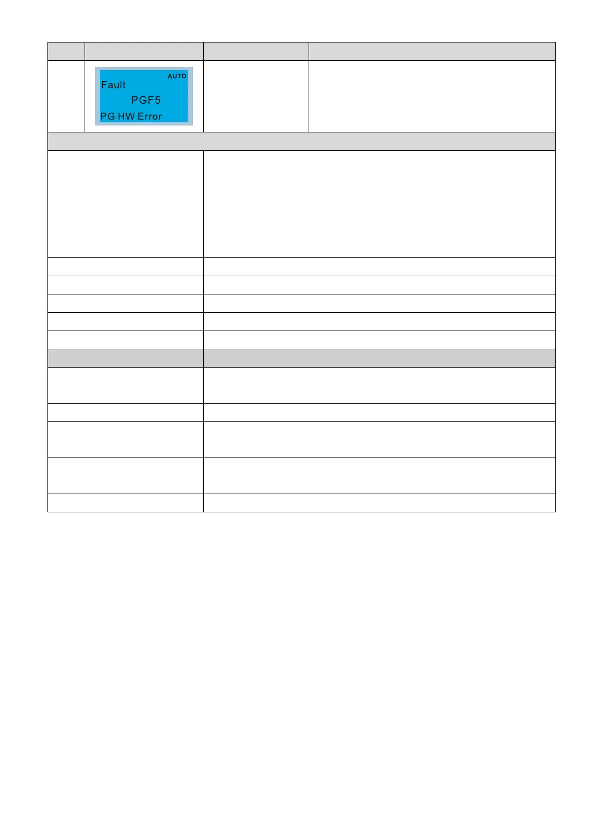 shows 0 or 7 (wiring error or no U/V/W signal input), the PGF5 error will be