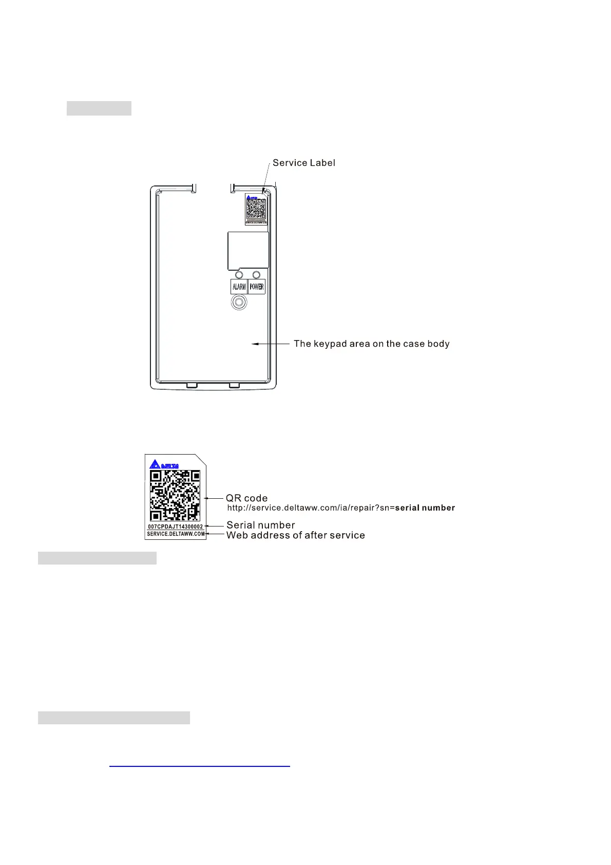 Service link label (Service Label) will be pasted on the upper-right corner of the side where keypad
